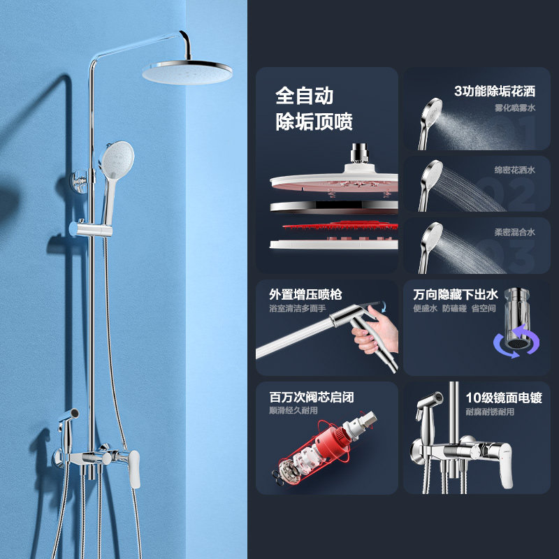 Jiumu shower set home bathroom shower descaling rain shower head bathroom wall-mounted all-copper bath faucet