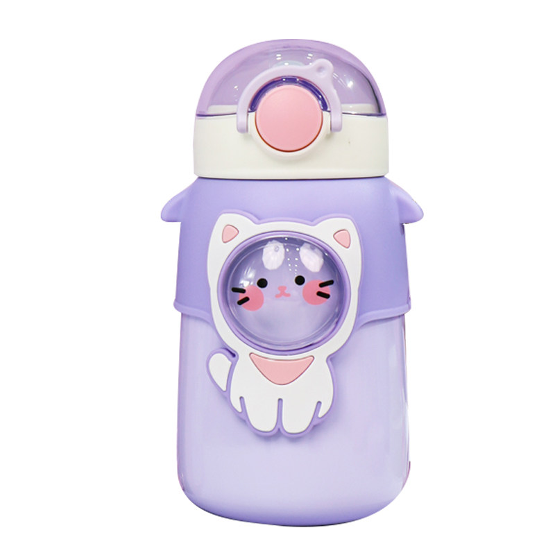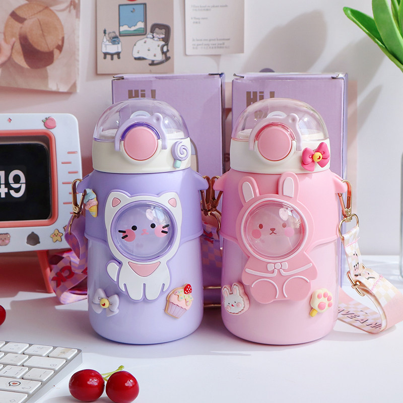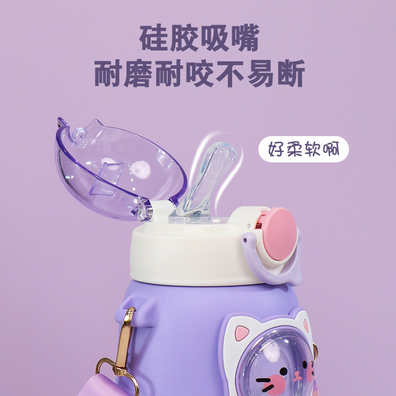 Receive a 2 yuan coupon for a limited time Favorite baby to send cute stickers Cup brush straw brush Safety material 316 stainless steel Bold silicone straw resistant to bite Pink rabbit-600ml cute sticker