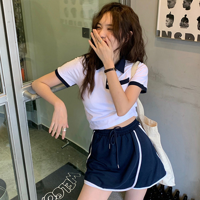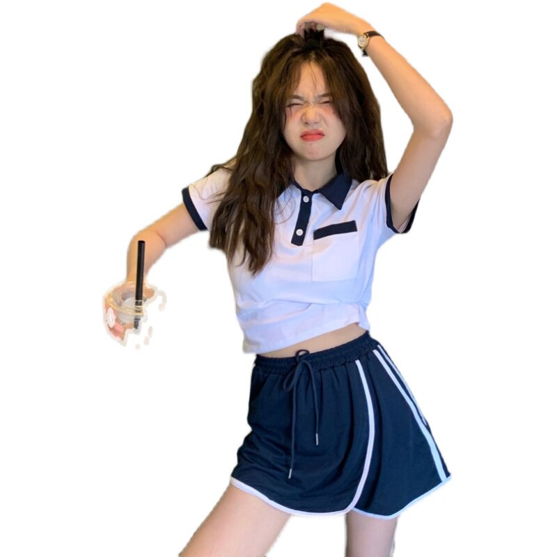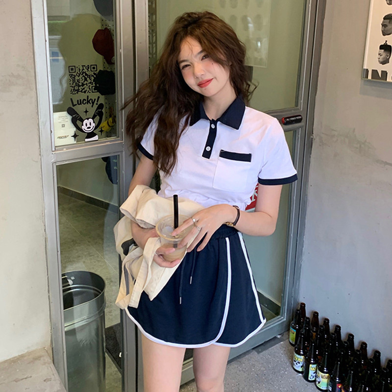 Salt series age-reducing casual sports suit women's summer slim short small POLO collar short-sleeved shorts two-piece set