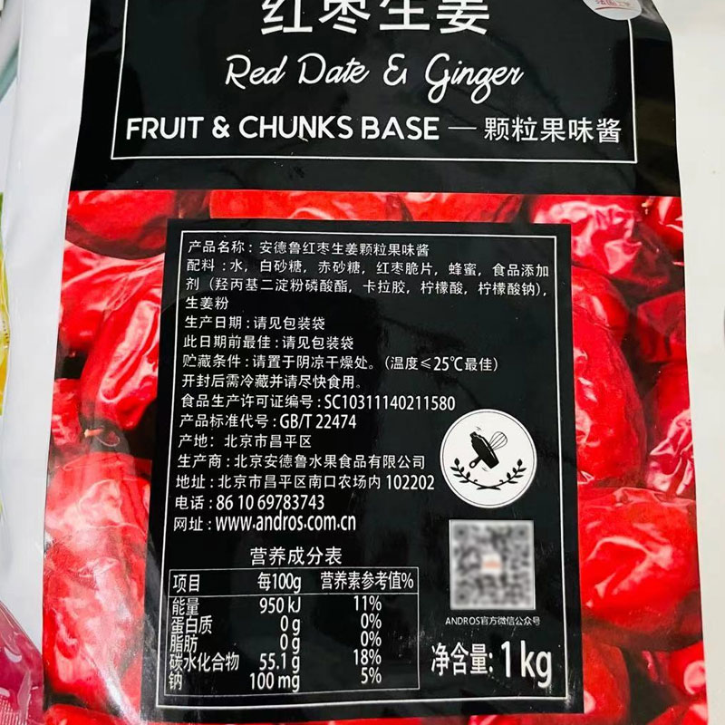 Andrew Red Date Ginger Grain Jam 1kg Concentrated Jam Bar Jam Breakfast Cake Sandwich Milk Tea Shop Raw-Taobao