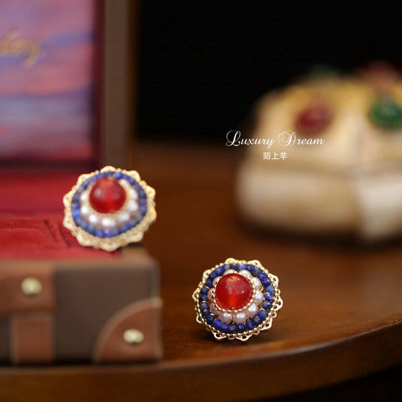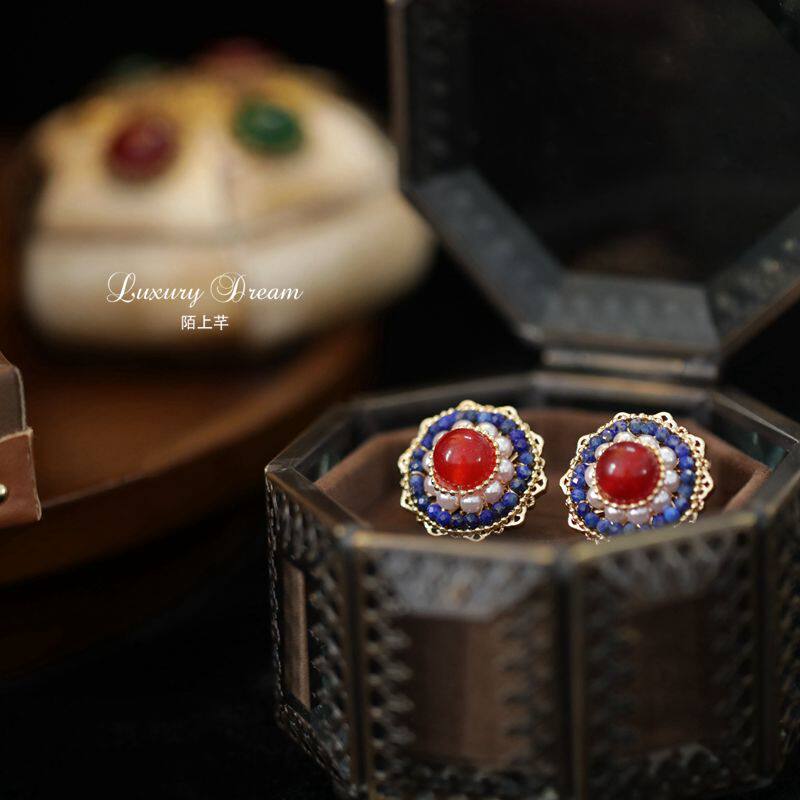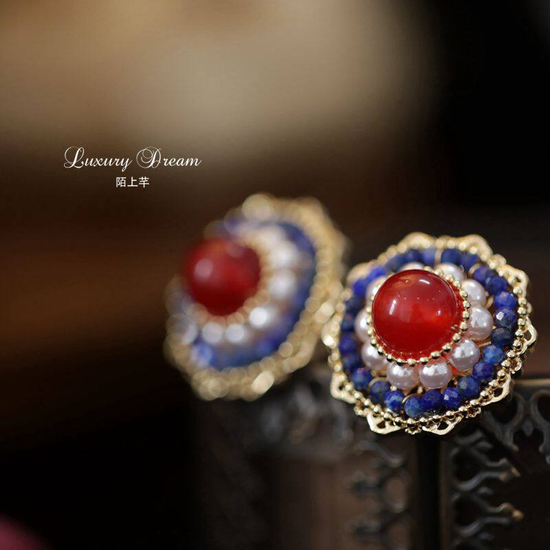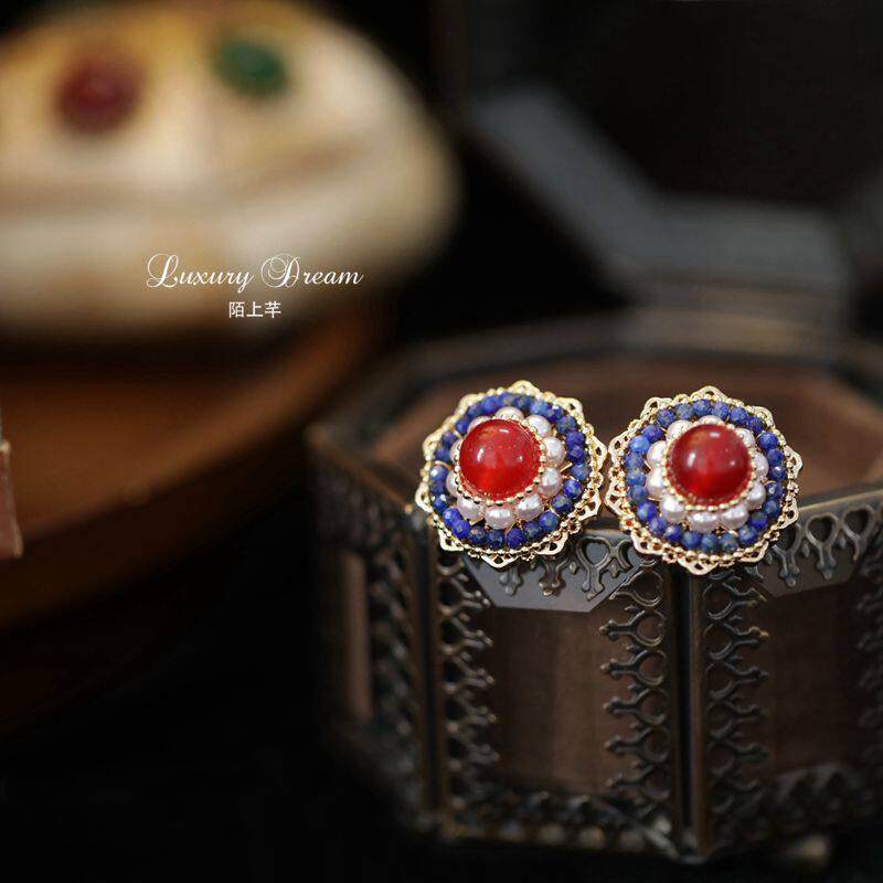 Suitable for summer ear acupuncture temperament ladies red retro earrings Chinese wind cold wind earrings small high-end earrings