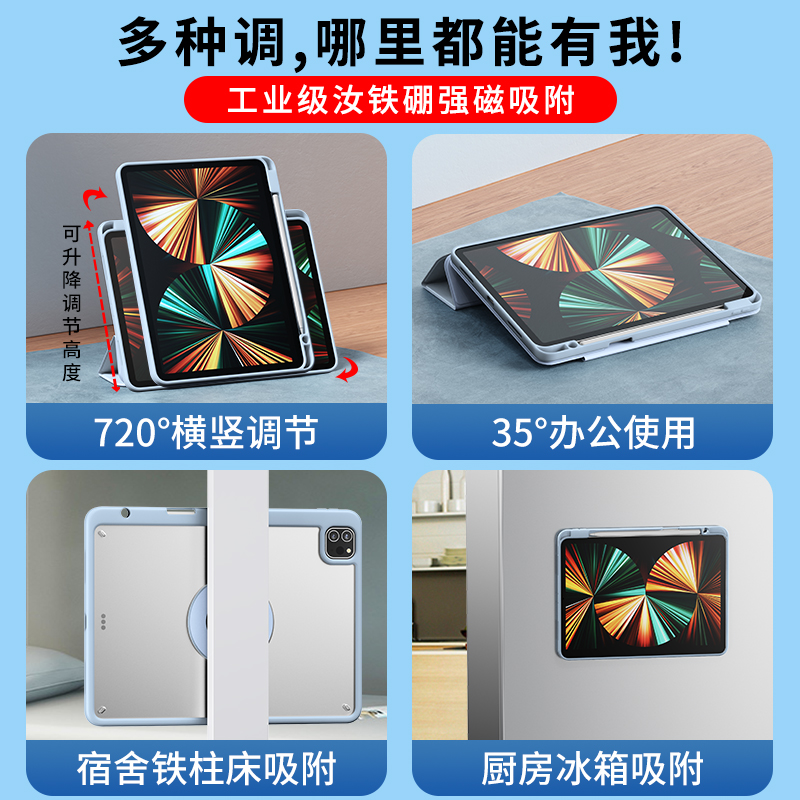 INFILAND 2022 new ipadpro protective sleeve split rotating air5 magnetic protective case suitable for Apple 11 inch acrylic 4 transparent with pen slot 2021 anti