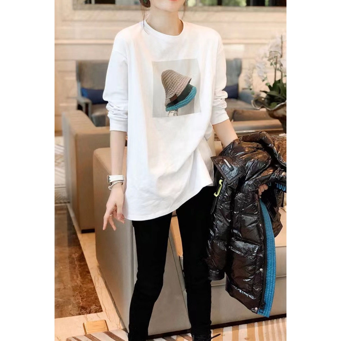Ogoods White T-Shirt Woman Long Sleeve 2023 Autumn Winter New Stack Wearing Pure Cotton Inner Hitch in the bottom of the undershirt-Taobao