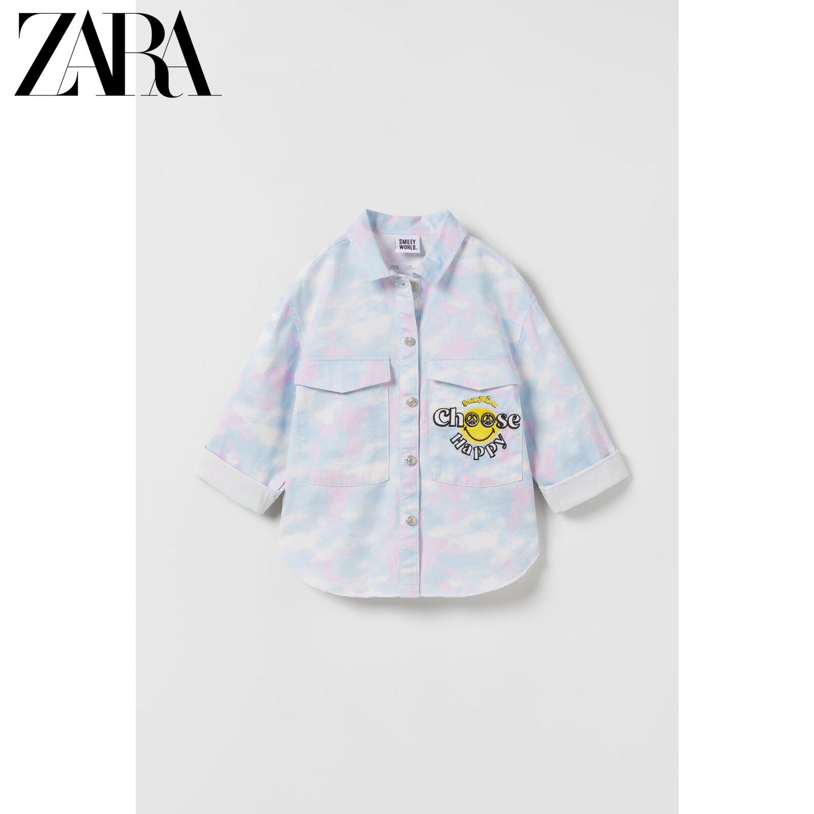 ZARA discount season children's clothing girls SMILEYWORLD® printed shirt jacket 8574631 044