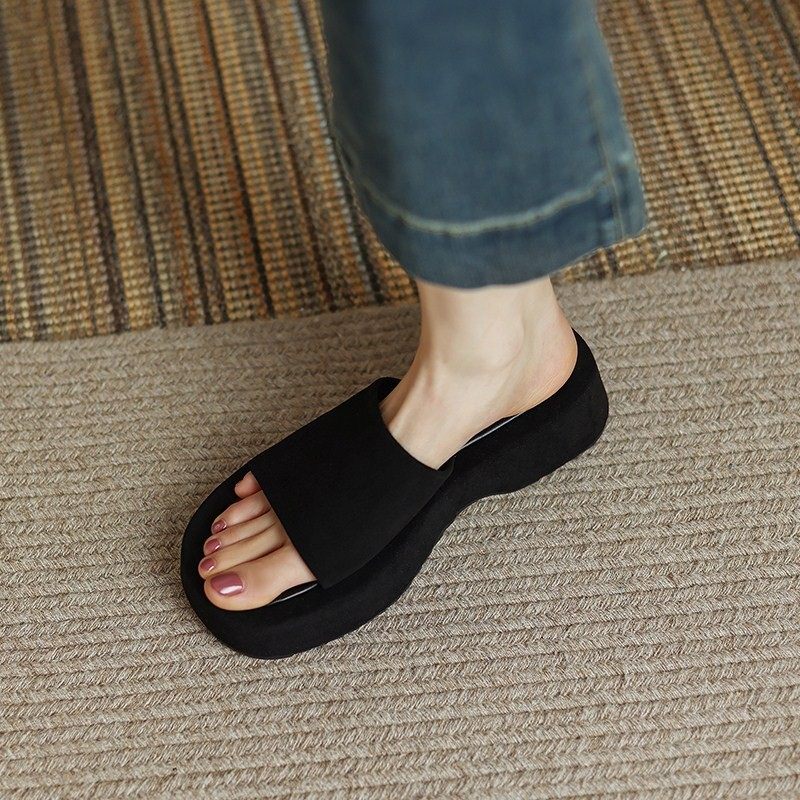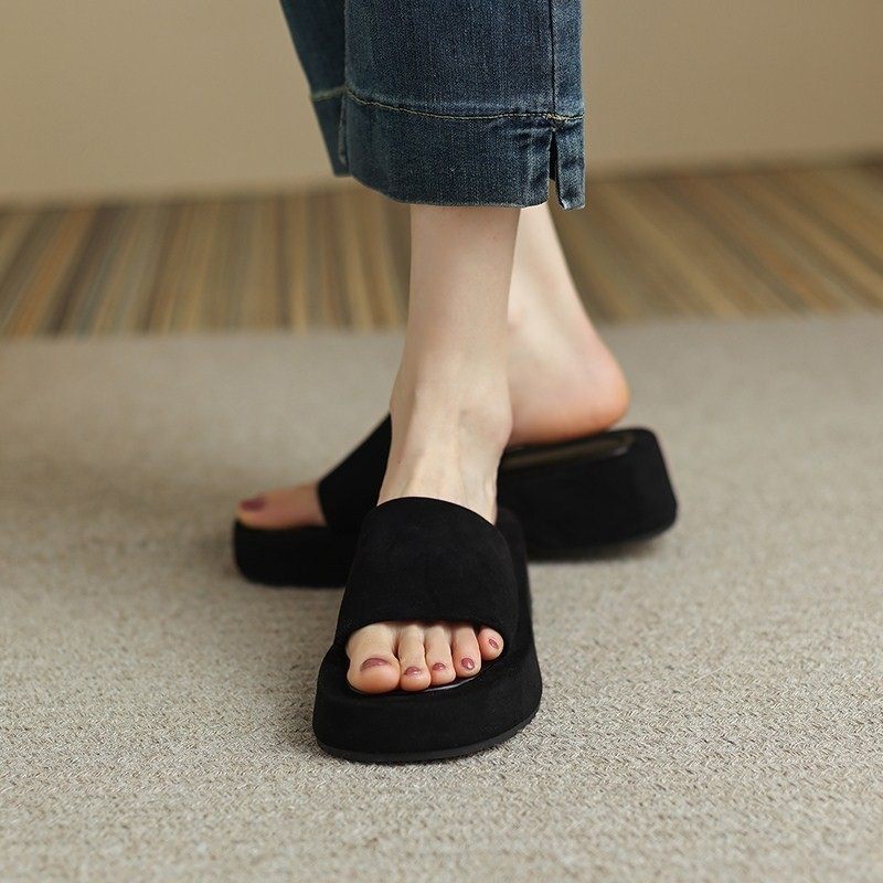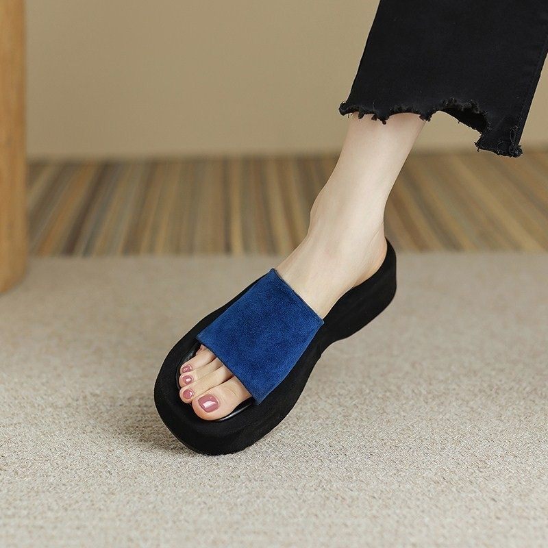 Blue wind chimes~ITSK sandals and slippers women's summer wear fashion one-word muffin thick-soled heightening sandals Roman women's shoes