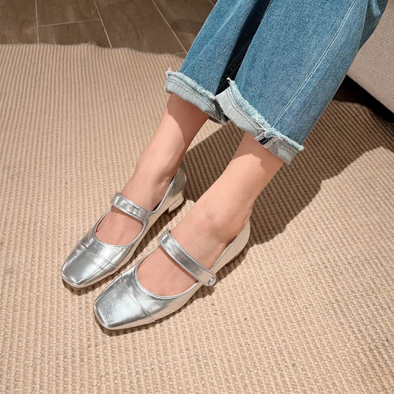 2022 new retro Mary Jane thick heel medium heel single shoes women's small fragrance style flat heel small leather shoes French ballet wedding shoes