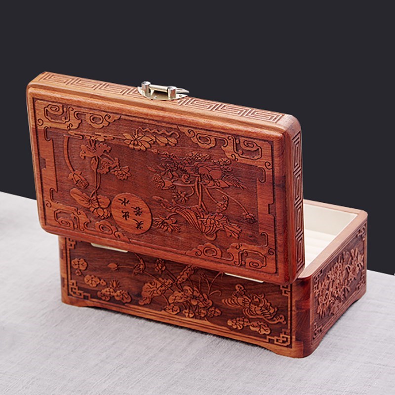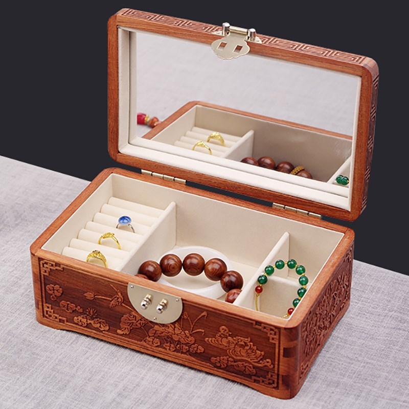 Mahogany Burmese Pear Jewelry Box Solid Wood Necklace Earrings Hand Jewelry Box Chinese Style Wooden Lock Makeup Storage Box