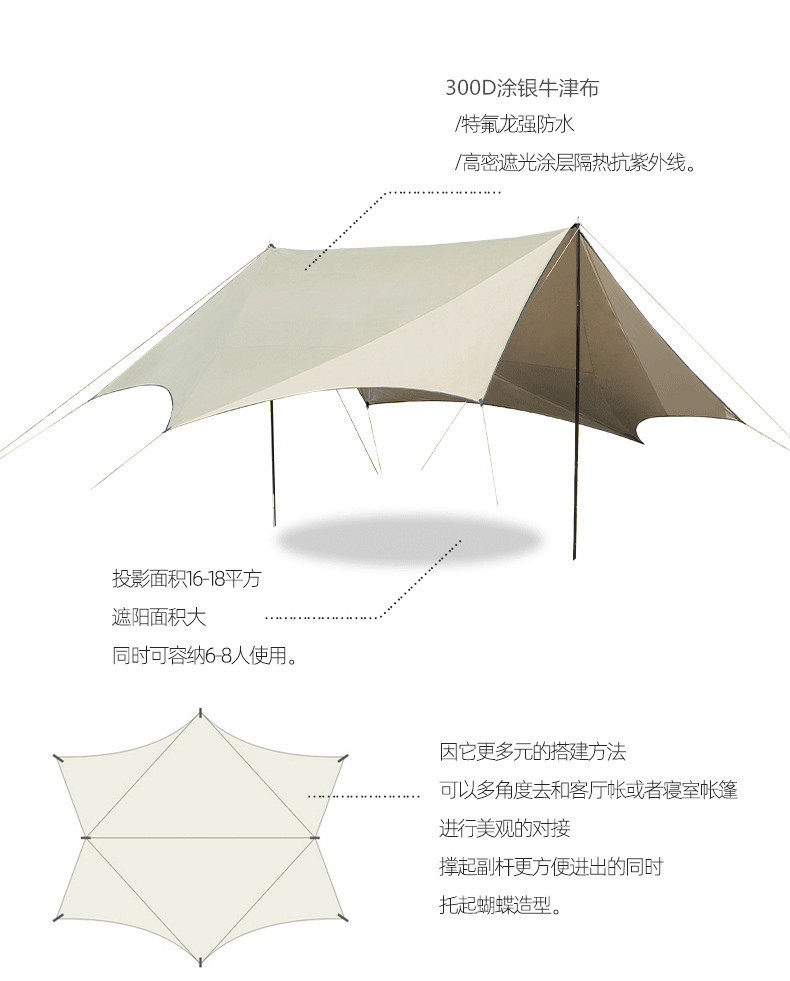 Outdoor oversized sunshade monster canopy painted silver picnic sunshade camping canopy living room diamond-shaped double-wing 6-corner canopy