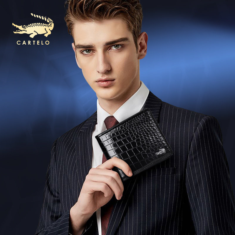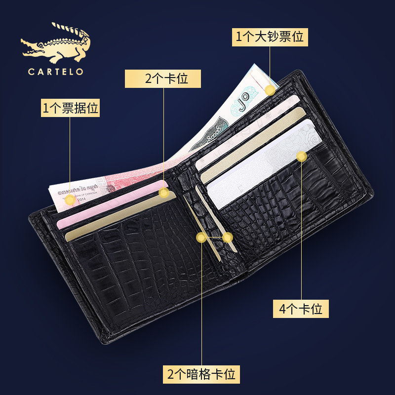 Cardi Crocodile Crocodile Leather Wallet Extremely Brief Men Genuine Leather Birthday Gift Practical Nameplate Luxury Card Foreskin Clips-Taobao