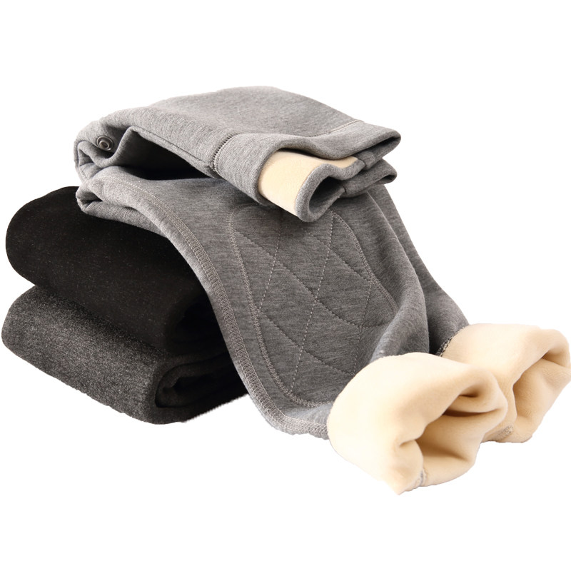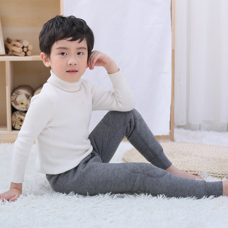 Boys autumn and winter plus velvet thickening high waist knee pads all-in-one velvet bottoming warm pants middle-aged children wear cotton pants
