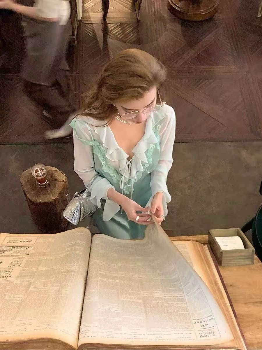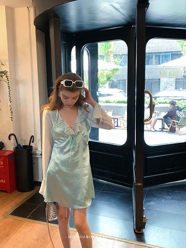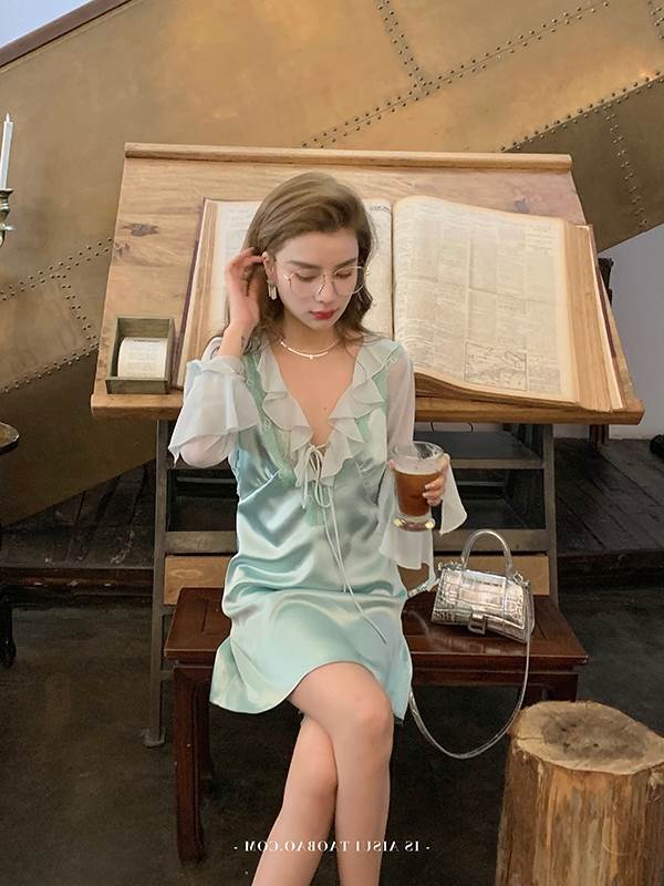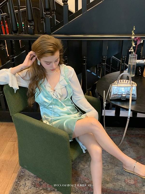 2022 Korean version of the new women's clothing trendy minimalist 100 hitch a small crowd design sensation slim blue lace harness foreign dress