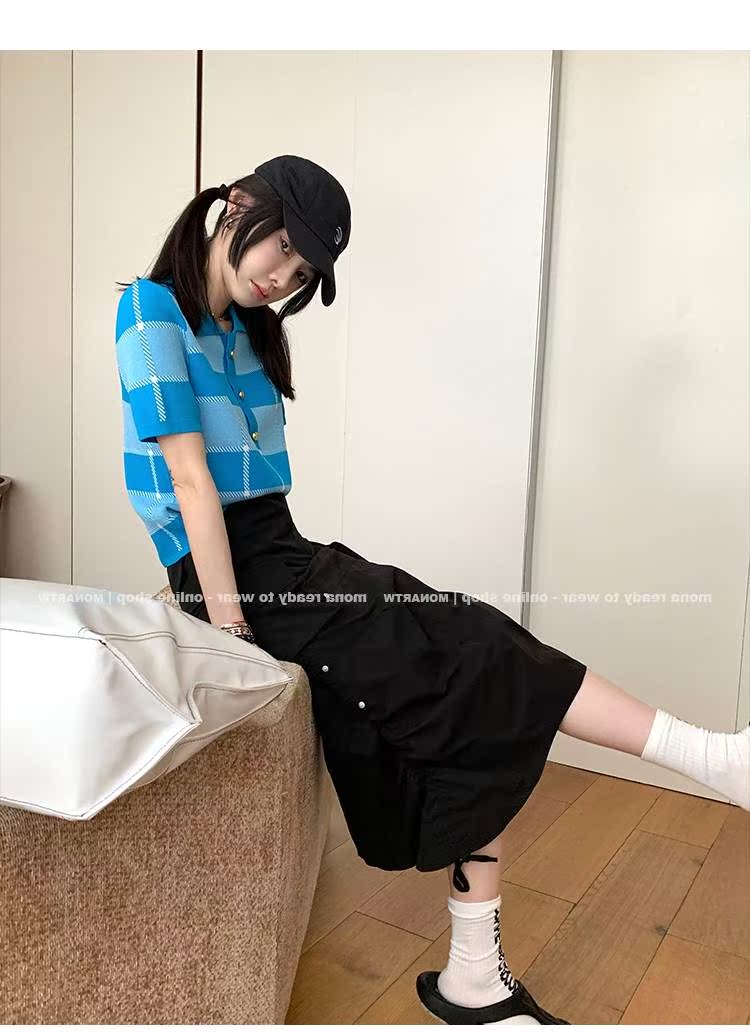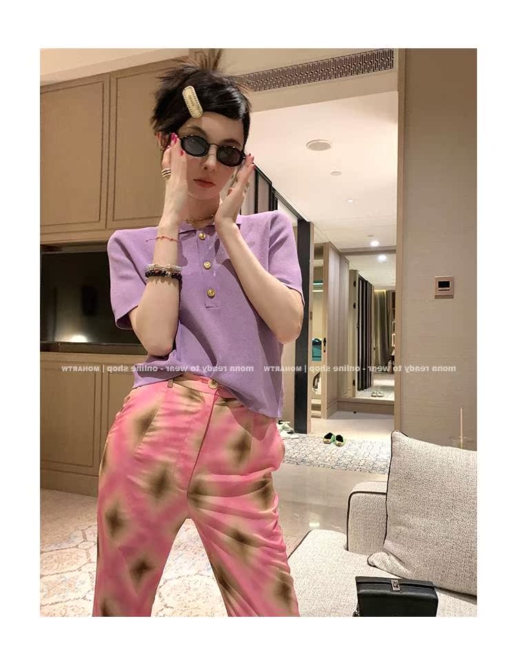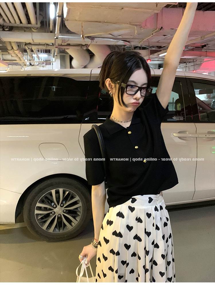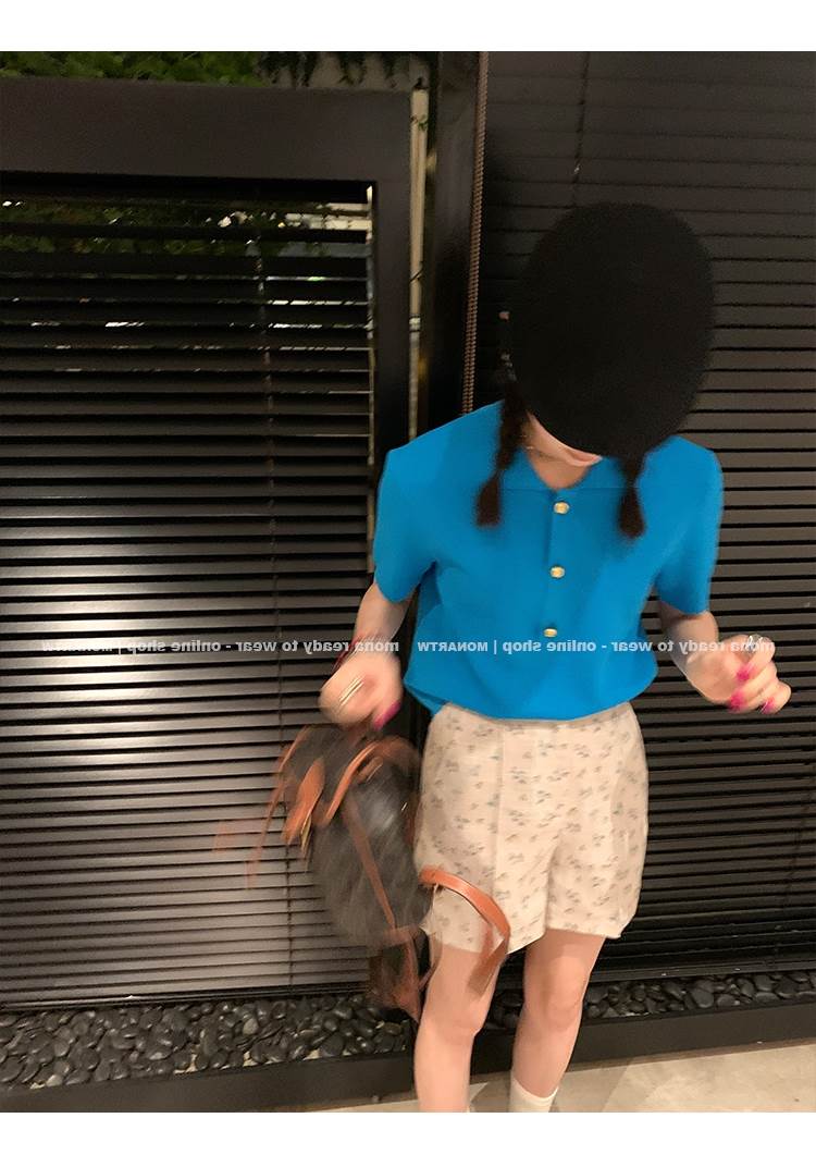 2022 Korean version of the new chic unique knit short sleeves Short-fit small blouses female air conditioning Shirt Summer thin women