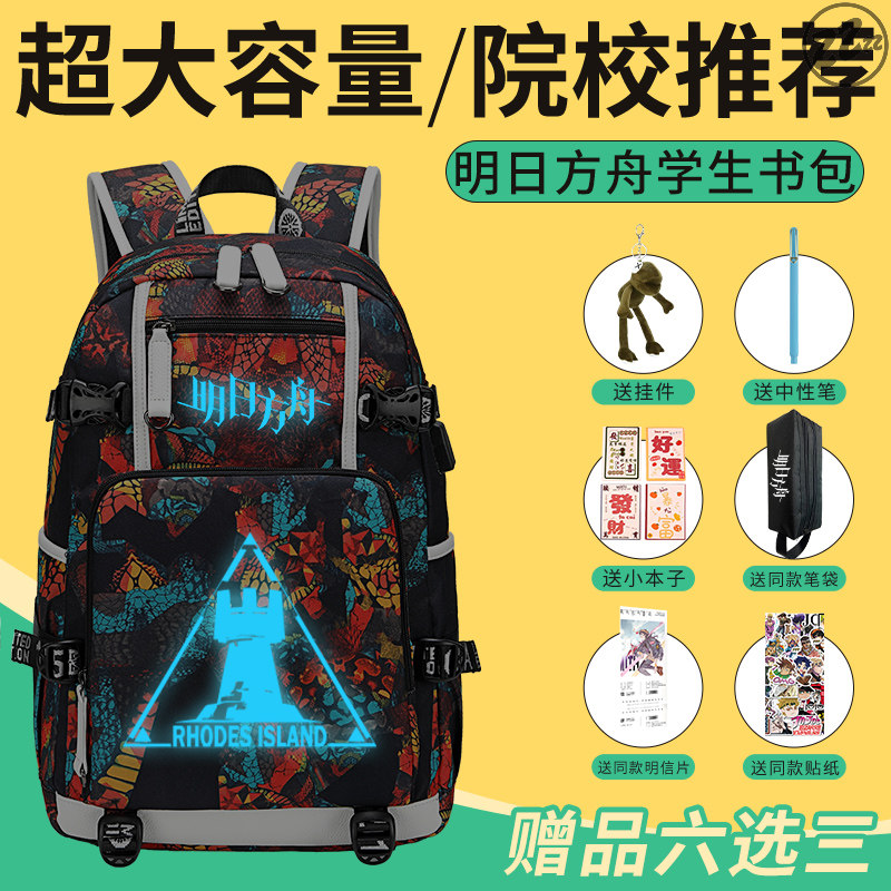Tomorrow's Ark schoolbag can be luminous and anti-splashing around the schoolbag for primary school students and junior high school students and boys to protect the ridge and reduce the burden.