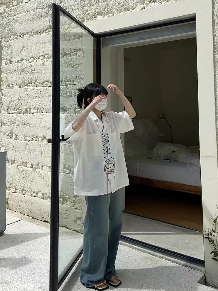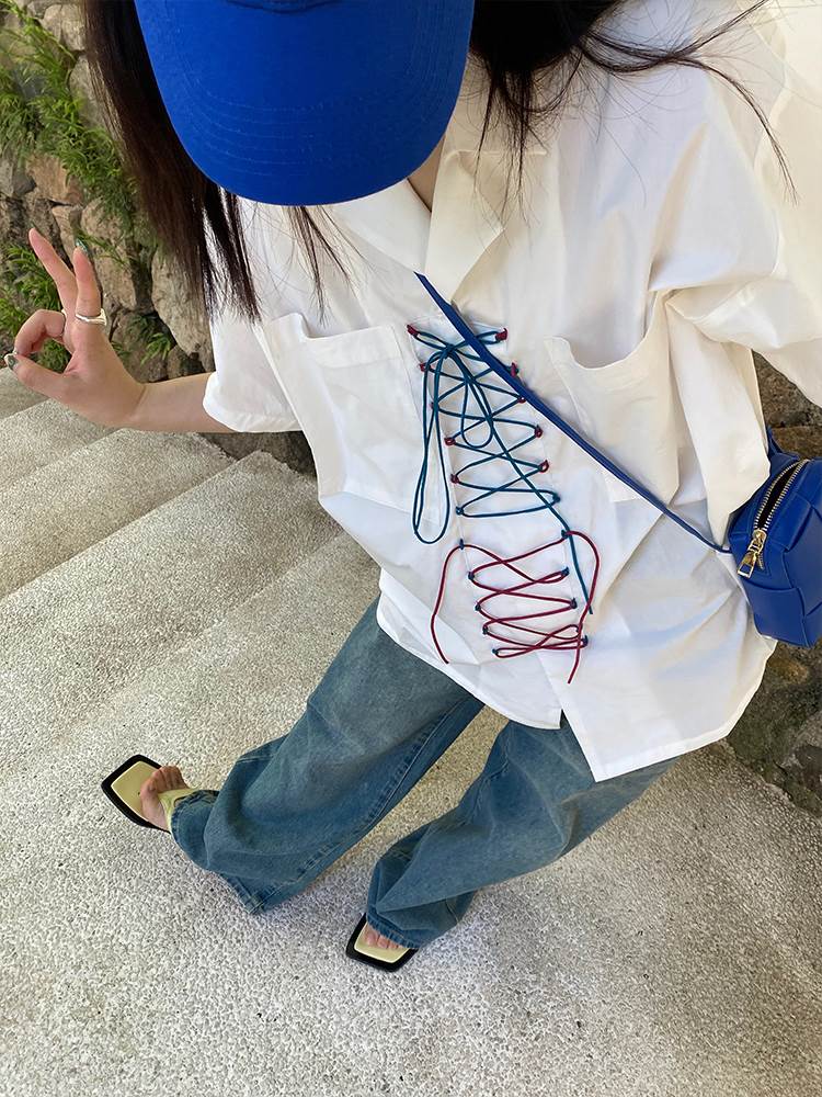 Small Crowd Design Sense Strap Shirt Loose 100 Hitch 2022 New Women's Fashion Summer Trendy Short Sleeve Blouse Shirt Woman