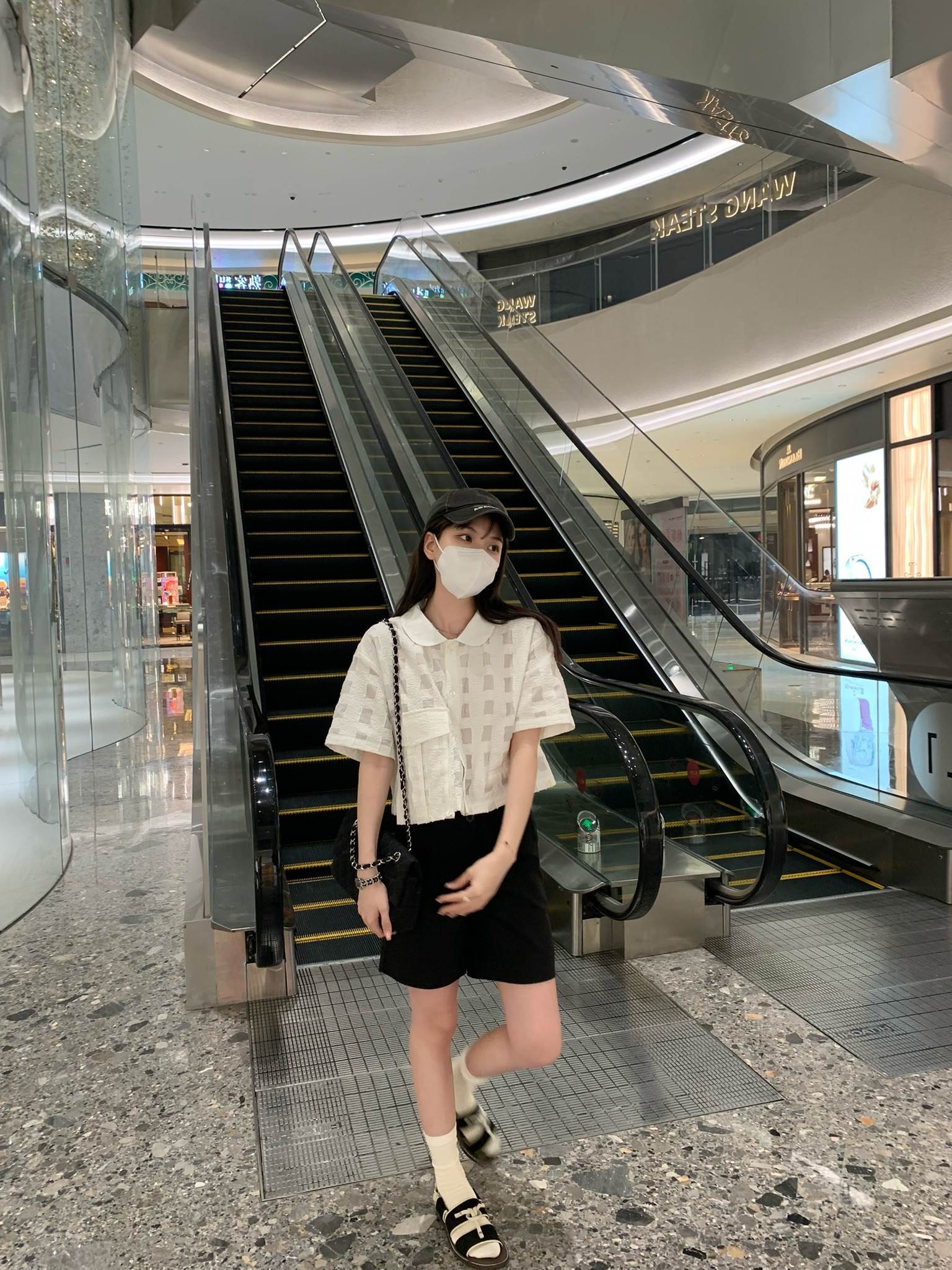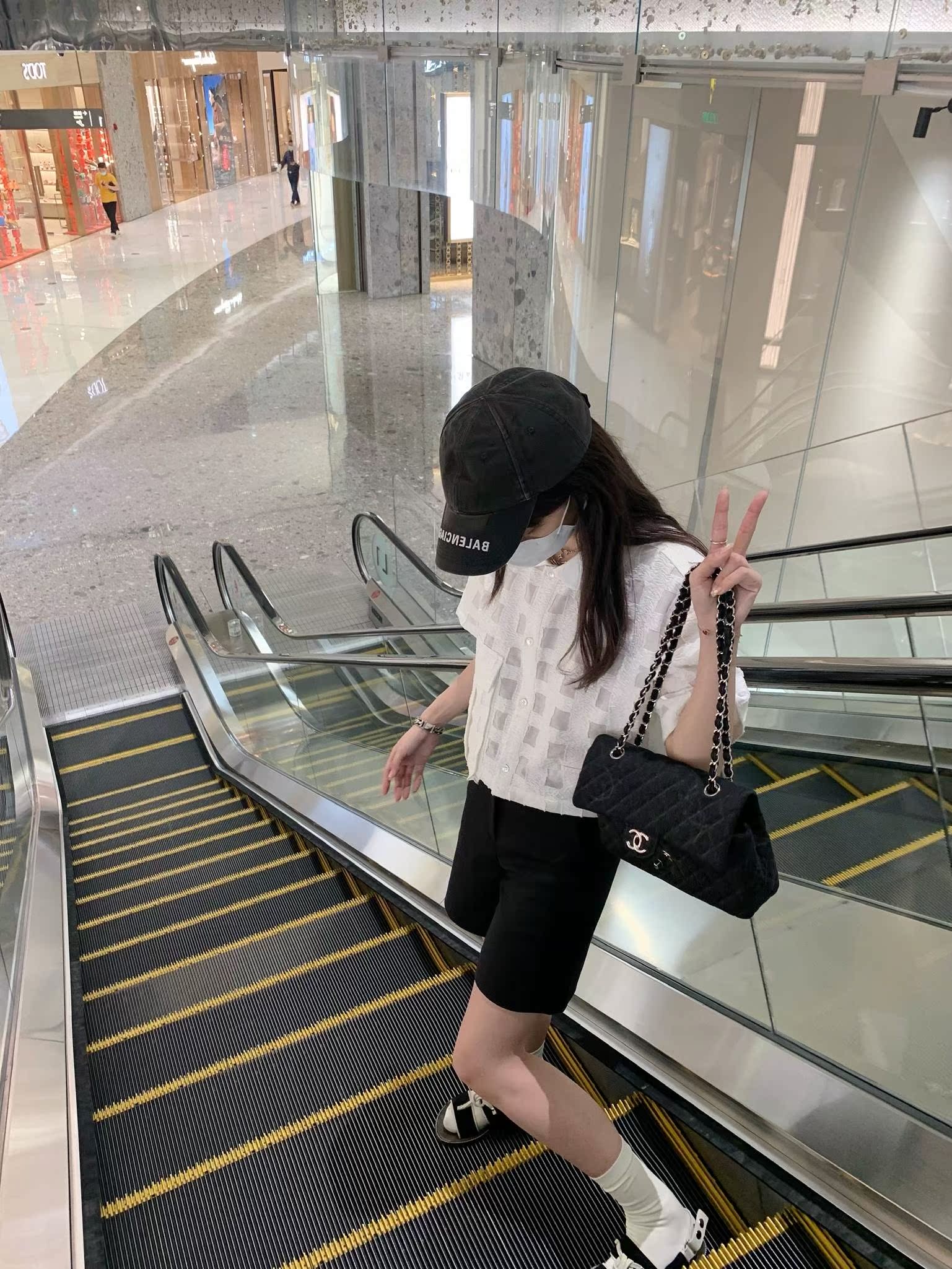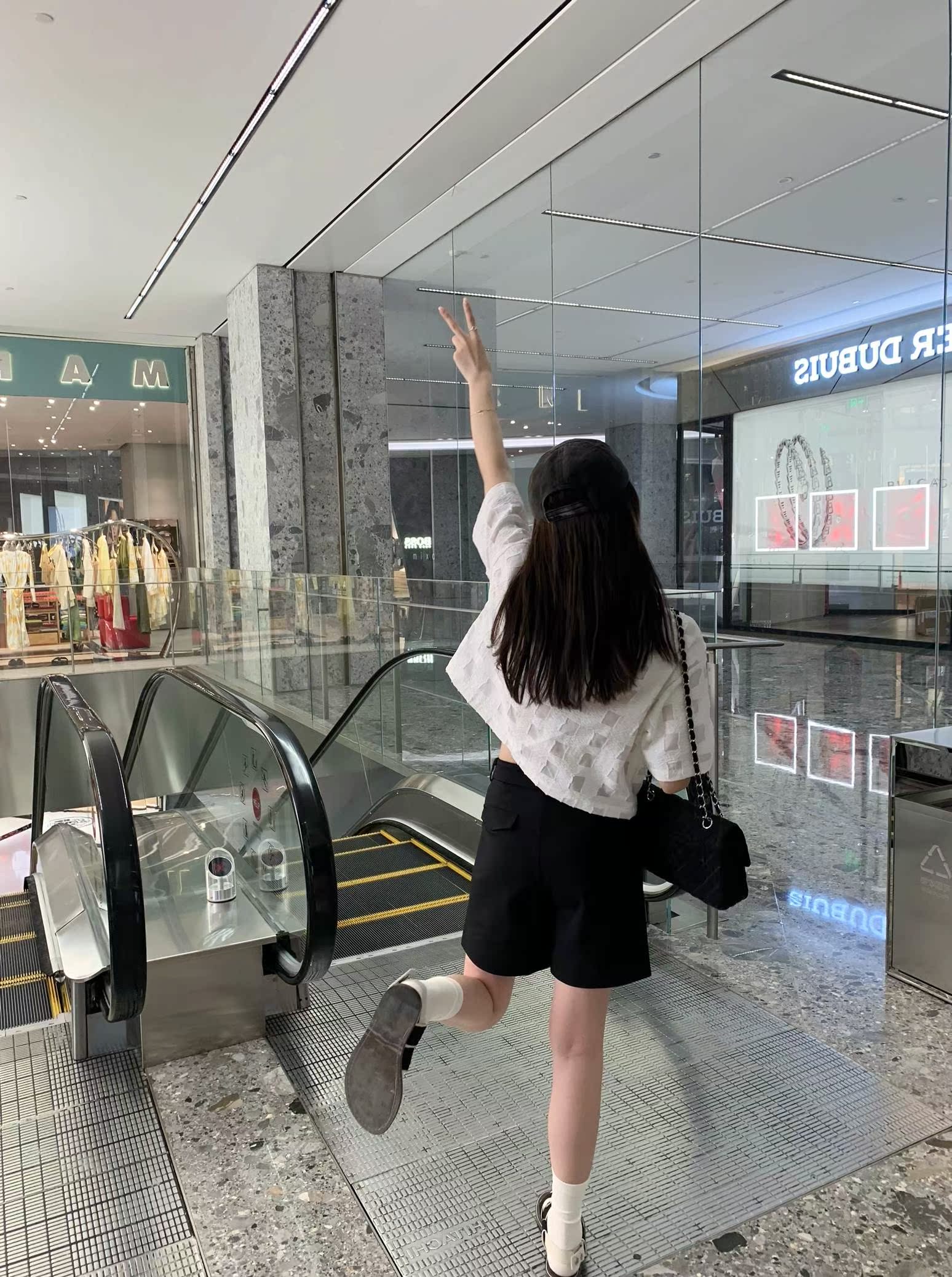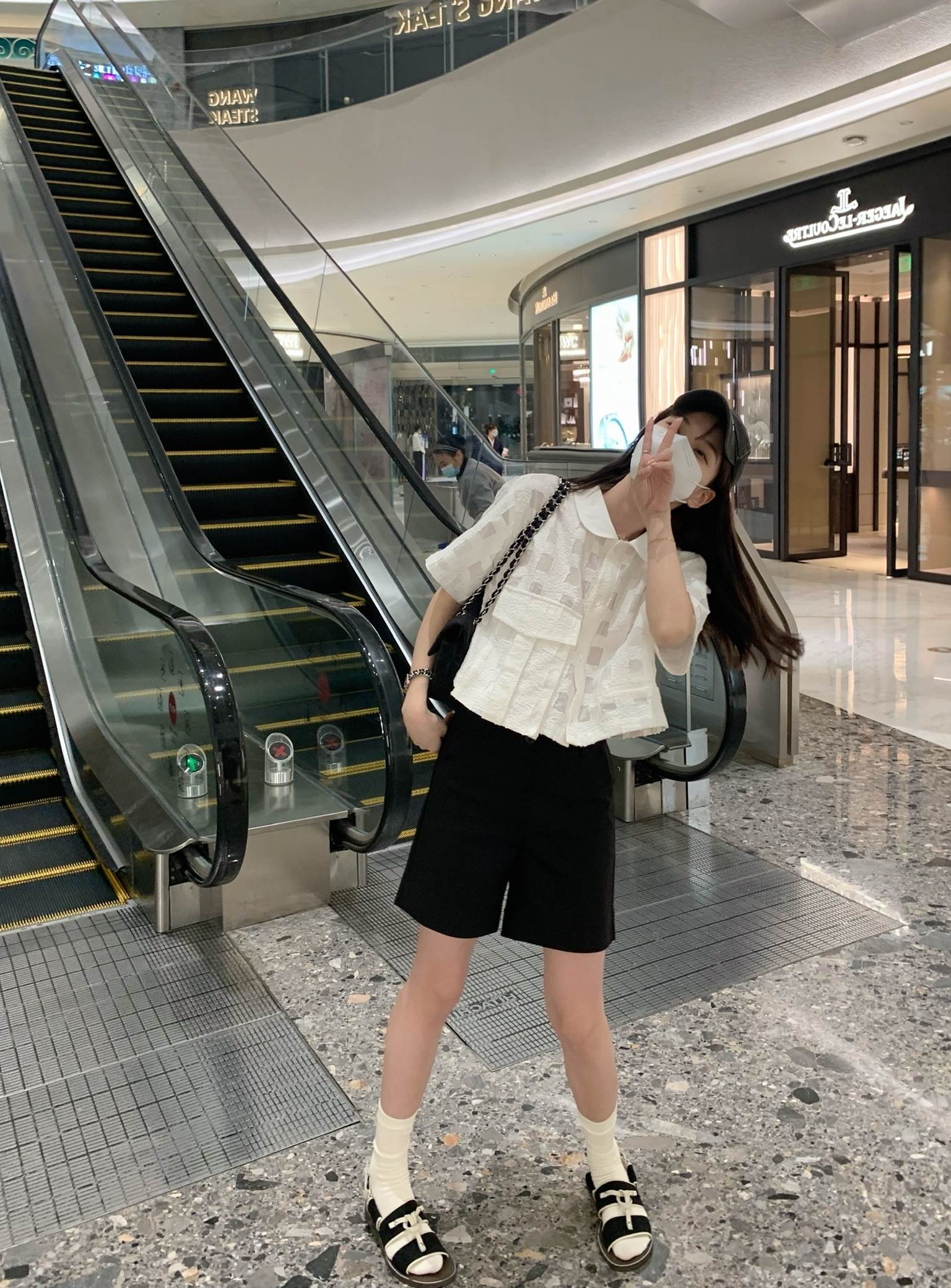 2022 Korean version of the new women's dress minimalist trendy day ensemble young boy black straight drum shorts summer high waist 100 lap slim fit