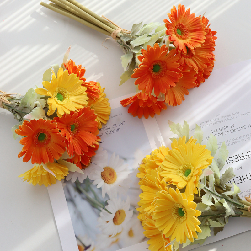 7 PU Gerbera fake bouquet holding Gerbera chrysanthemum simulation flower living room table decoration flower decoration flower arrangement material
