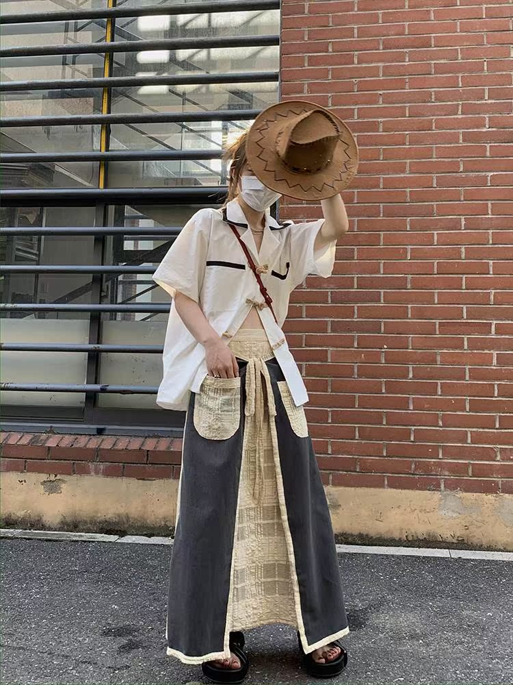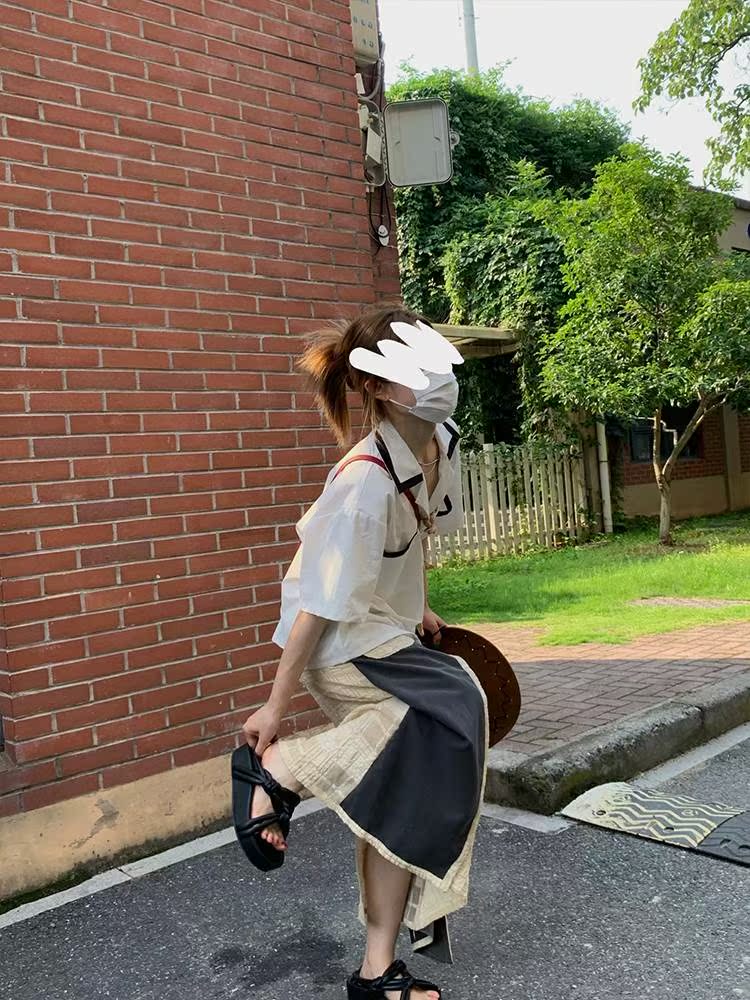2022 Korean version of the new rice grey small crowddesign sensation front strap skirt Summer 100 Lapped Retro slim loose A-character dress