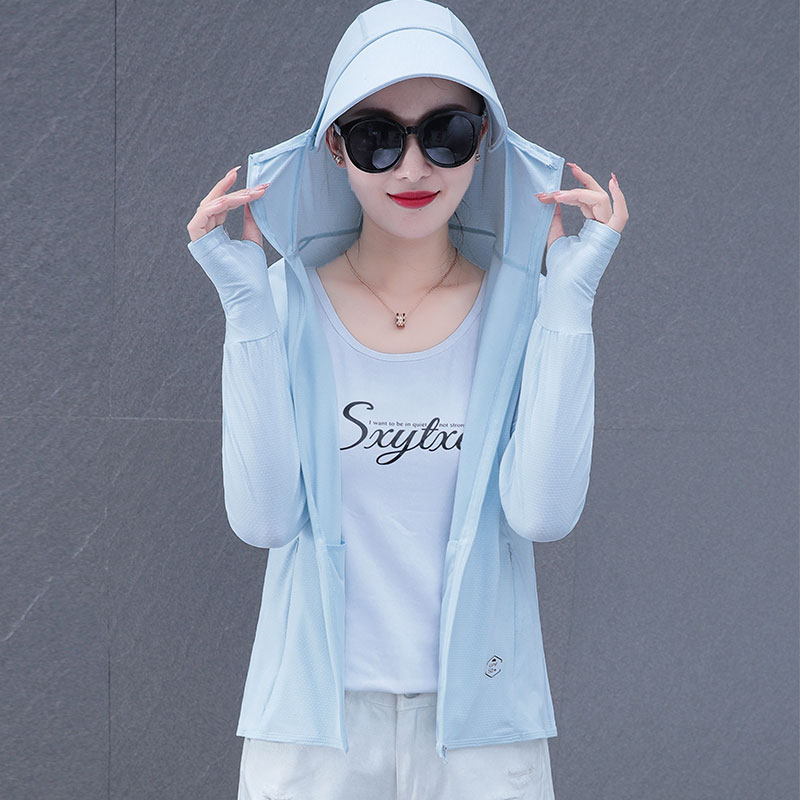 Ice silk sunscreen clothing women's anti-UV breathable thin section 2022 summer new light and thin hat long-sleeved blouse
