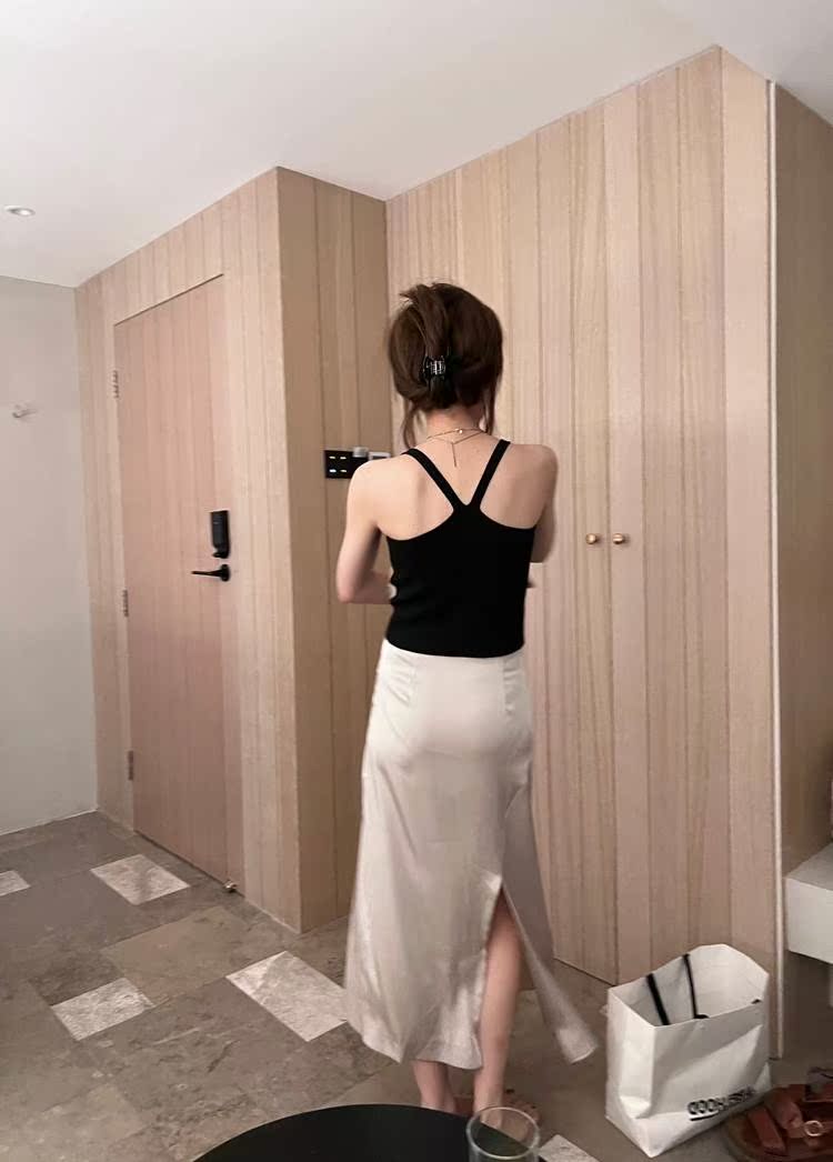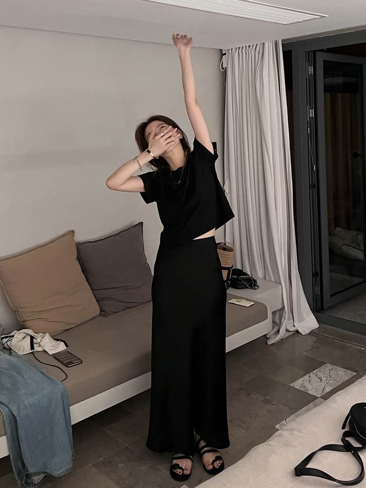 2022 Korean version of the new women's dress Jane about 100 hitch a high waist display slim one-piece open fork with a 100 plexor half-body dress