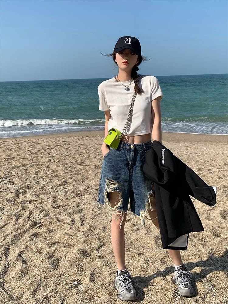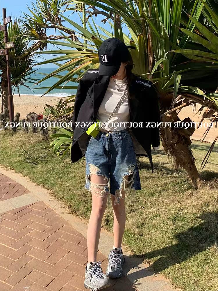 Dime Denim Shorts Woman 50% Pants Summer Super Explicit Legs Fine Loose Straight Drum Shorts Hot Girl Breaking 50% Pants