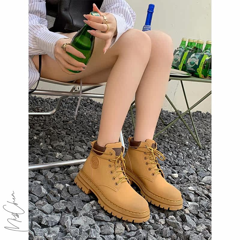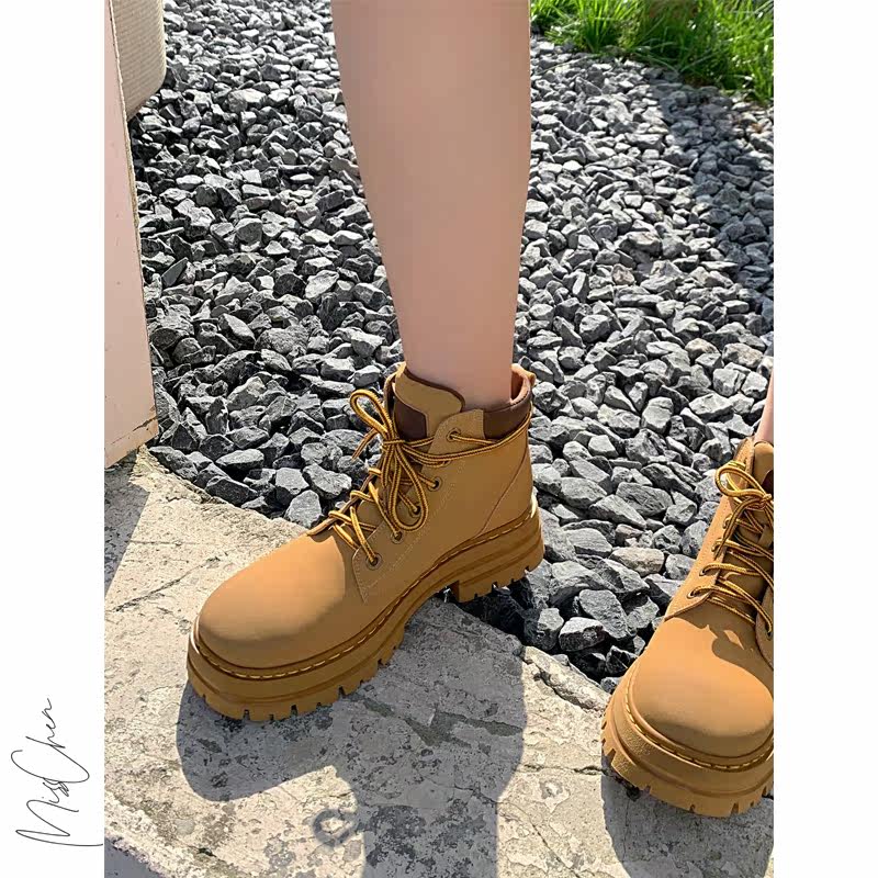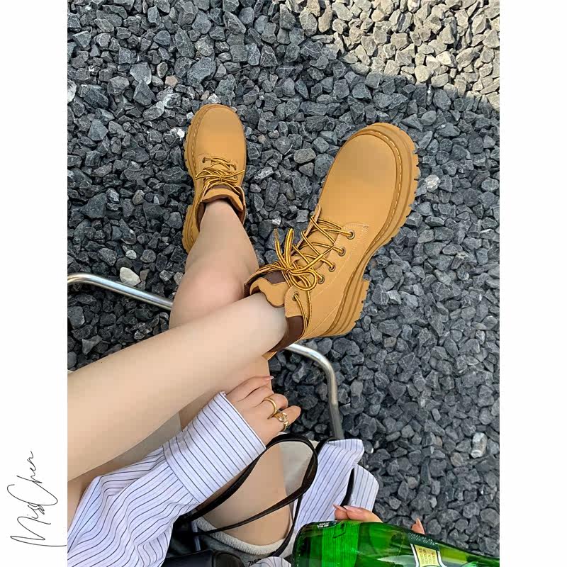 Cool girl ~ yellow boots 6 hole tie with thick bottom increase of Martin boots flat classic short boots