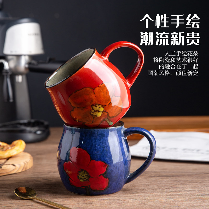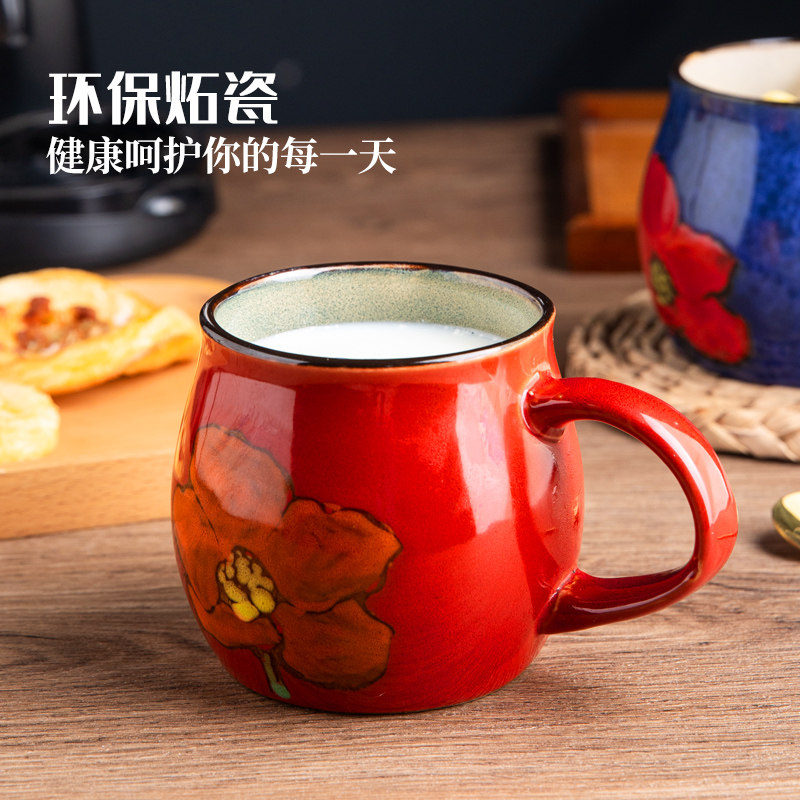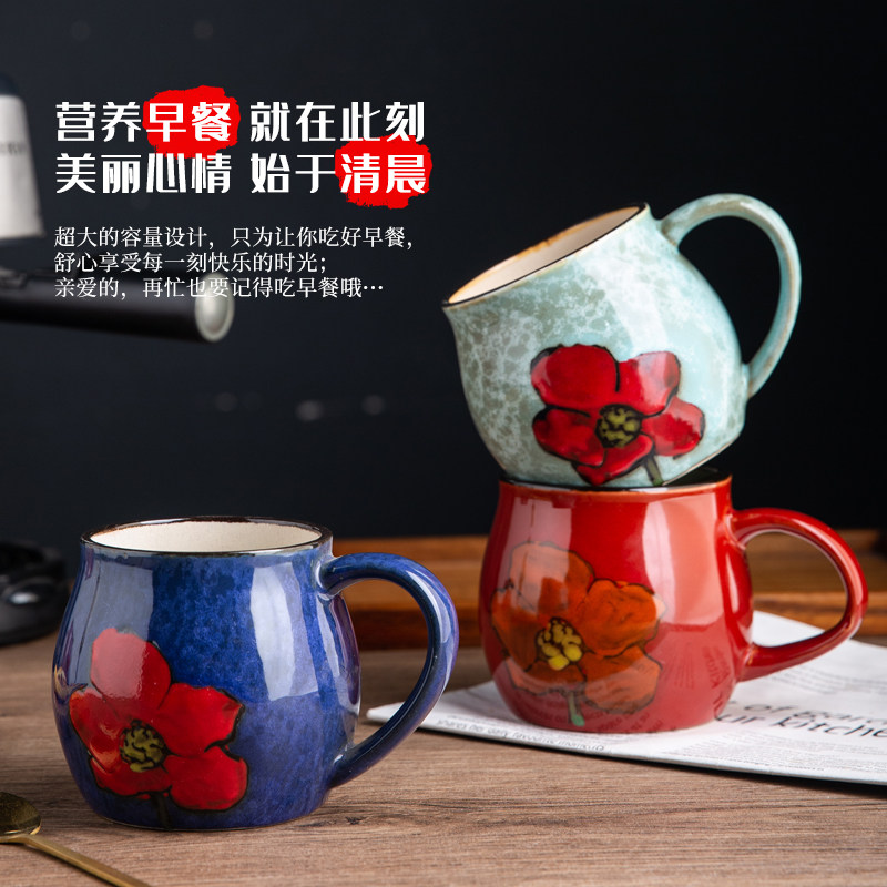 Large-capacity breakfast cereal cup kiln glazed ceramic water cup retro hand-painted home mug office cup