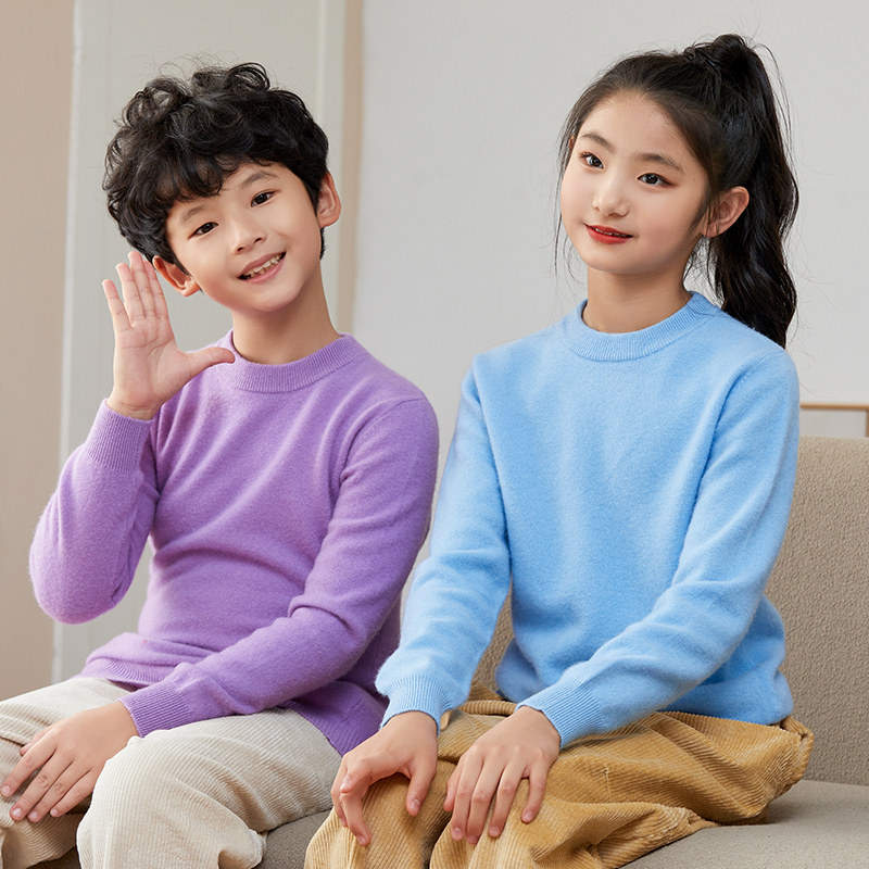 2022 autumn and winter new 100% pure cashmere sweater children's sweater boys and girls skin-friendly medium and big children's bottoming shirt
