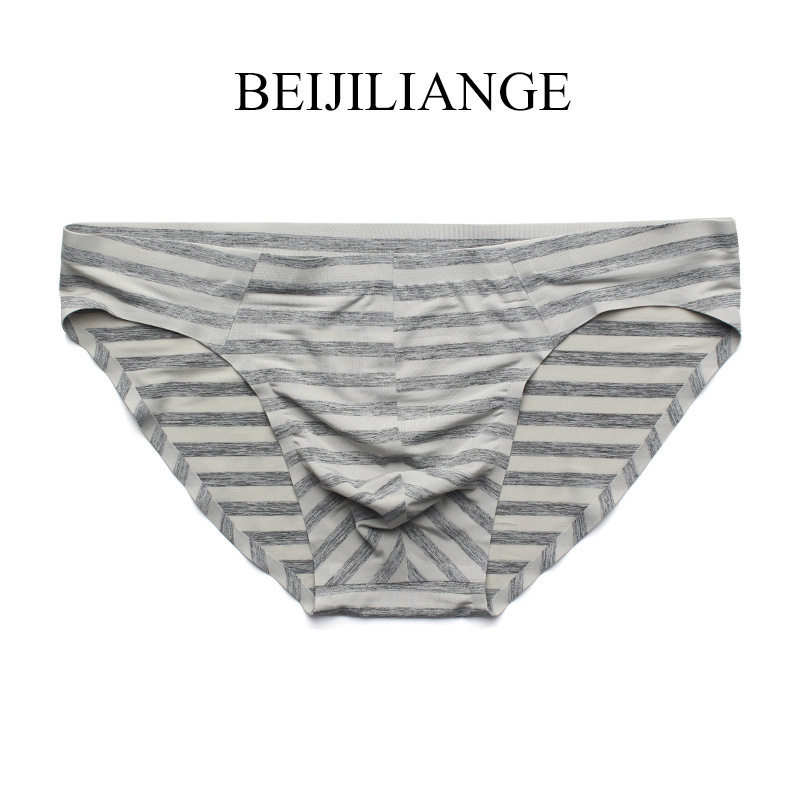 Men low waist No marks Pants Sexy one-piece Ice Striped Single Layer Summer Breathable Striped Triangle Pants