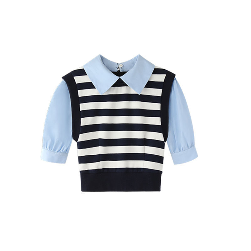 College Wind Sweet and Striped Collared blouse closets waistcoat Thin Retro Half Skirt Girl Sensation Two Sets