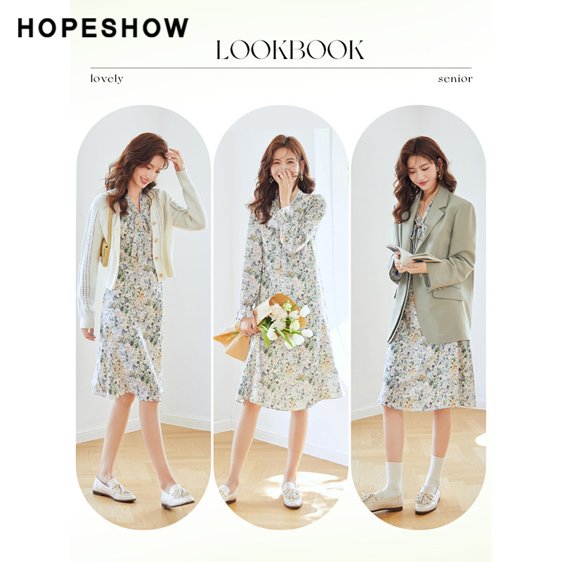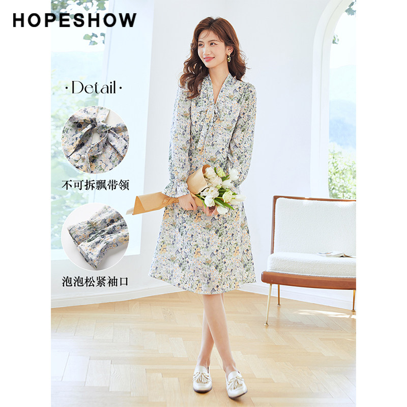 Red-sleeved floral dress fall 2022 new women's puff sleeves fluttering led pull pull pull long sleeves vintage chiffon skirt