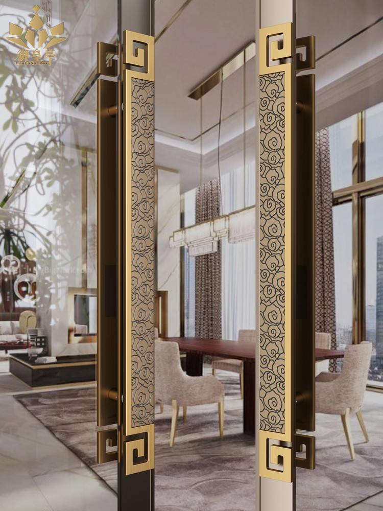 New Chinese style antique glass door handle custom club room solid wood door handle high-end hotel door handle