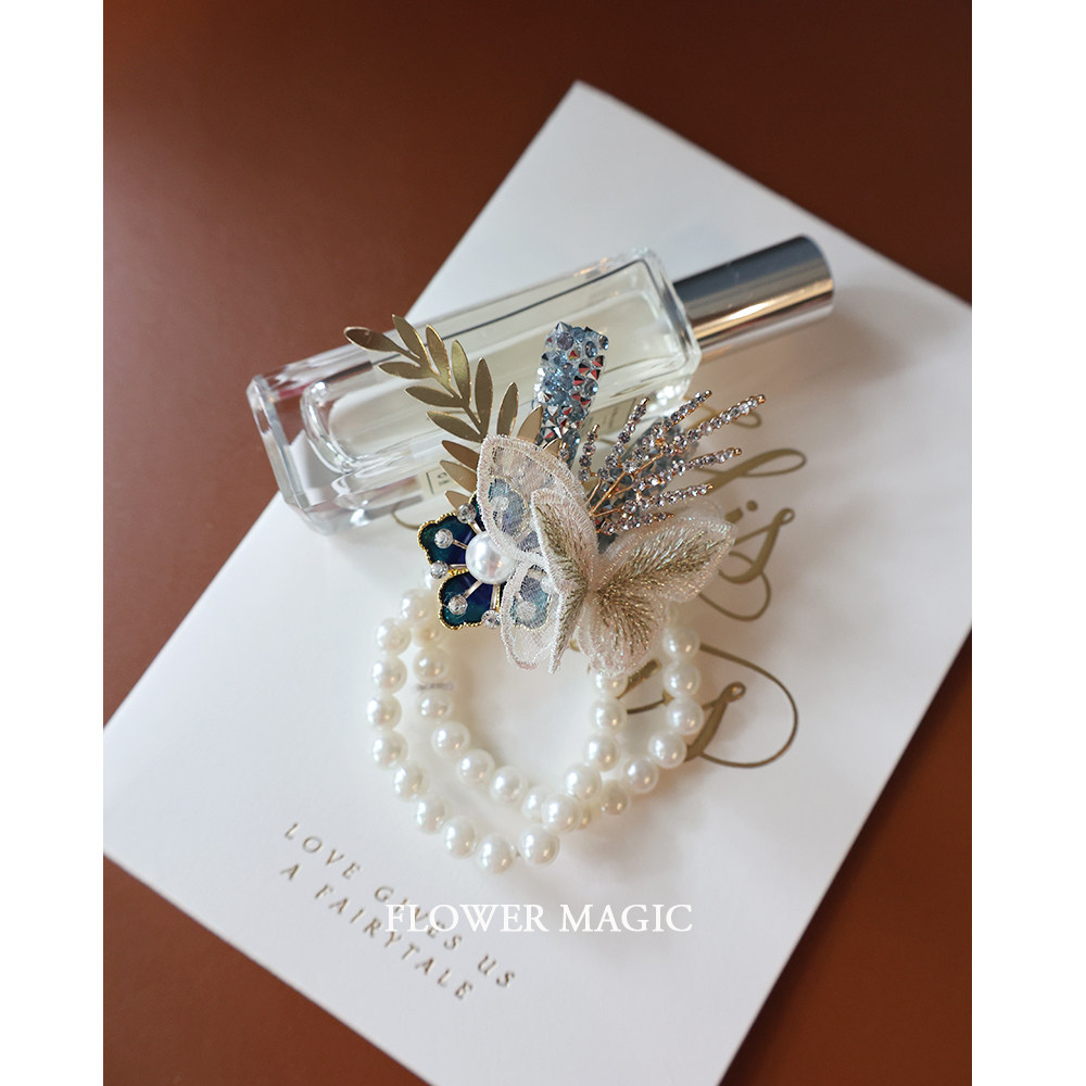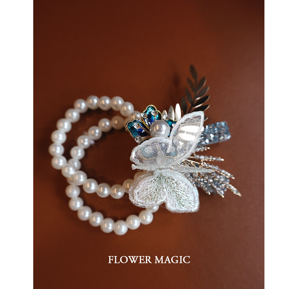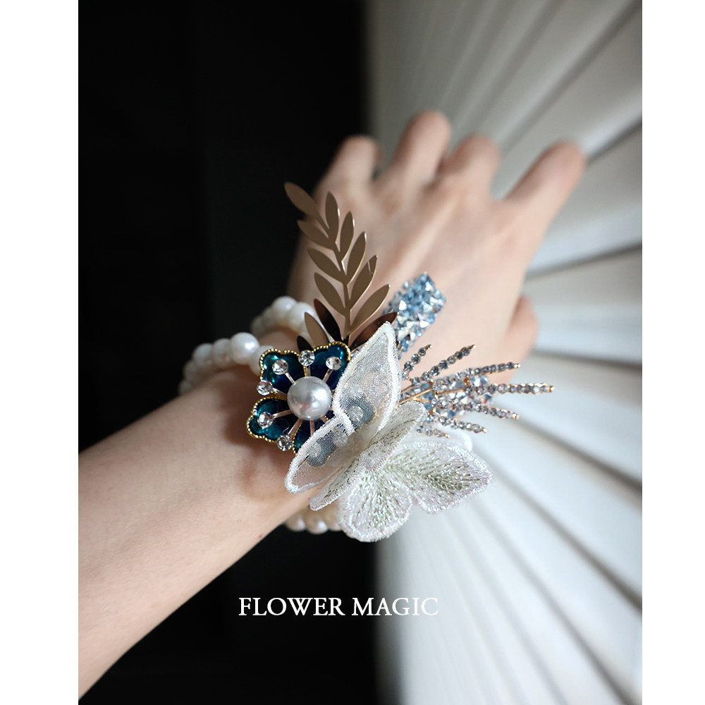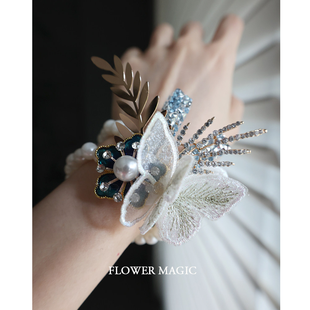 Blue Sparkling Butterfly Water Drill Meritocracy Bride Wedding Bridesmaid Group Activities Pearl Bracelet Wrist Flower-Taobao
