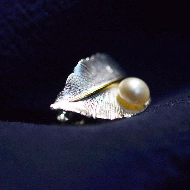 925 Silver ear decorated the silver stereo leaf pattern inlaid with natural pearl ear nails