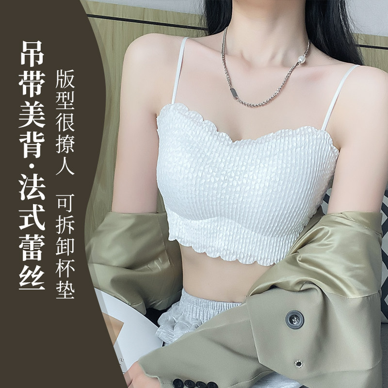 Tube top underwear women's summer thin lace thin shoulder strap bra anti-glare wrap chest beautiful back bottoming camisole small vest