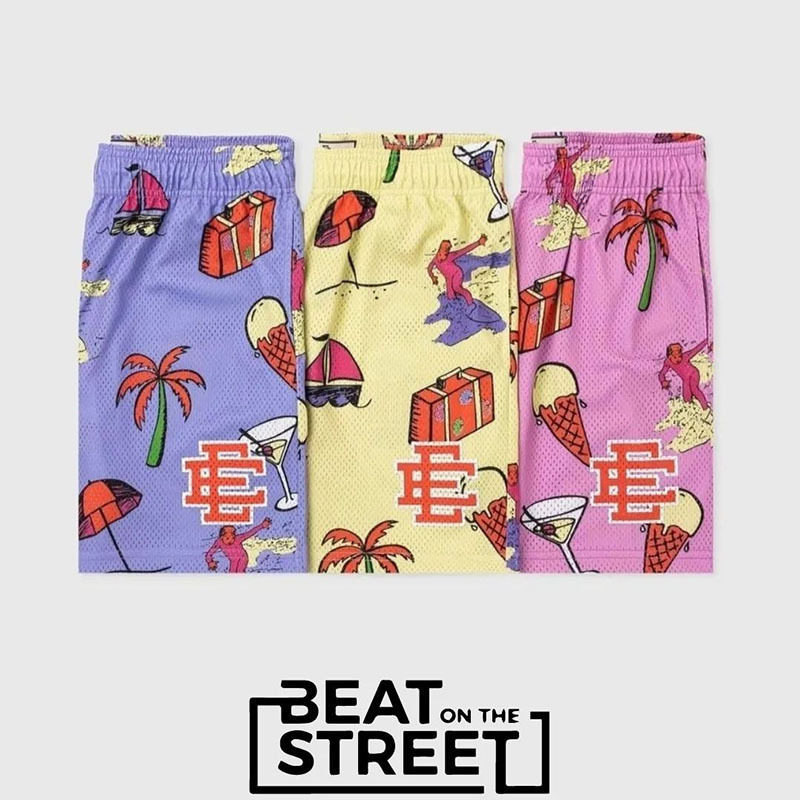 EE American style but knee shorts holiday wind shorts tide brand summer printed mesh breathable casual basketball quarter pants