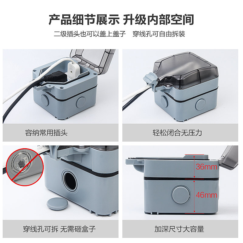 Separate waterproofing case (clear case) waterproof case Five holes 10A Deforce West socket waterproof case Three holes 16A Deforce West socket waterproof case open 5-hole 10A Deforce West socket waterproof case