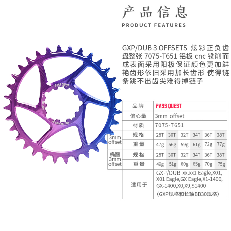 PASS QUEST dazzling gxp dub dental disc straight up 3mm eccentric mountain bike disc with positive and negative teeth Single disc 7075