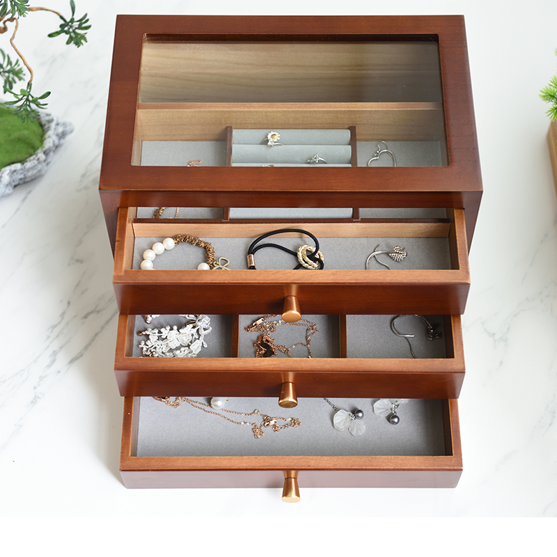 Solid Wood First Decorated Box Minimalist Modern Jewelry Box Multilayer Drawer Containing Box Large Capacity Anti-Oxidation Ornament Box Light Extravagant-Taobao