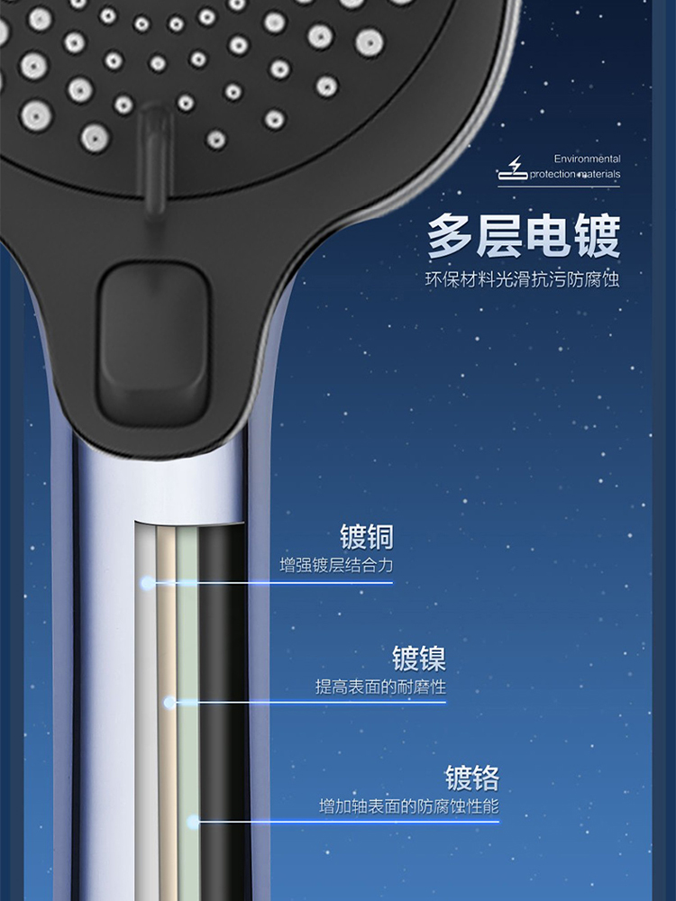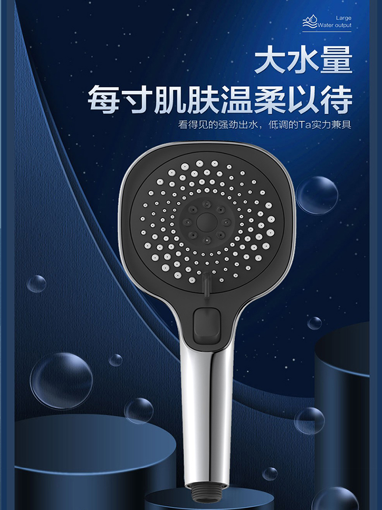 Wrigley supercharged hand-held shower shower head square large water output black chrome-plated household three-function shower head