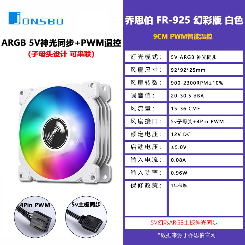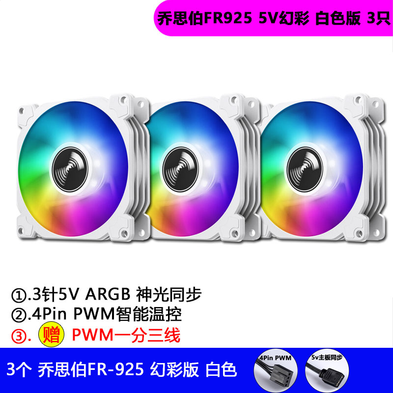 Jothber FR925 Phantom version 5v3 pin 9025 Divine Light Synchronized ARGB temperature-controlled PWM Host shell Fan 9CM white