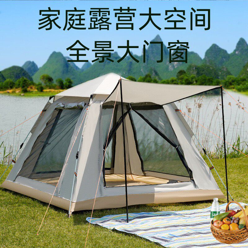 Tent outdoor fully automatic 3-4 people beach quick open camping 4-6 people rainproof camping square tent