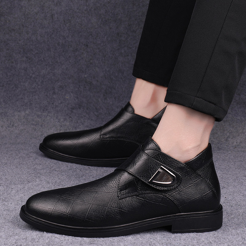 Men's shoes winter plus velvet warm cotton shoes leather dress leather shoes men's high tube casual shoes soft leather trendy shoes dad shoes