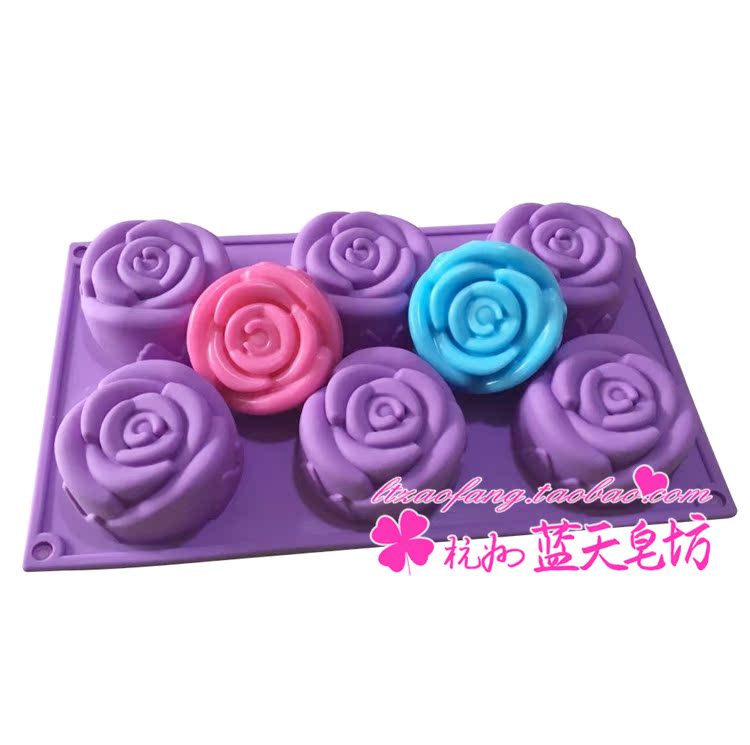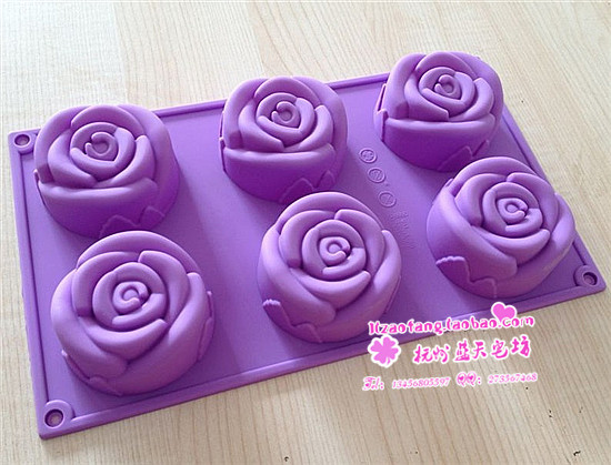 xj032 Pretty six - plus rose 6 holes large rose silicone cake mould handmade soap abrasives candle die