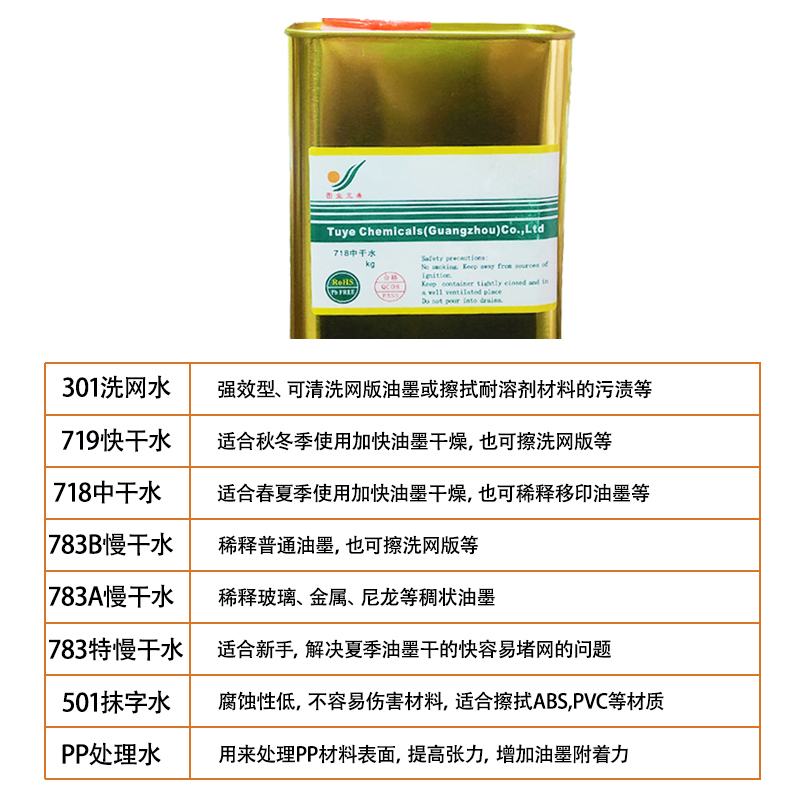 Silk printing industry 301 washnet water 783 slow dry open water oil 718 ink thinner trowel water PP treatment water-Taobao