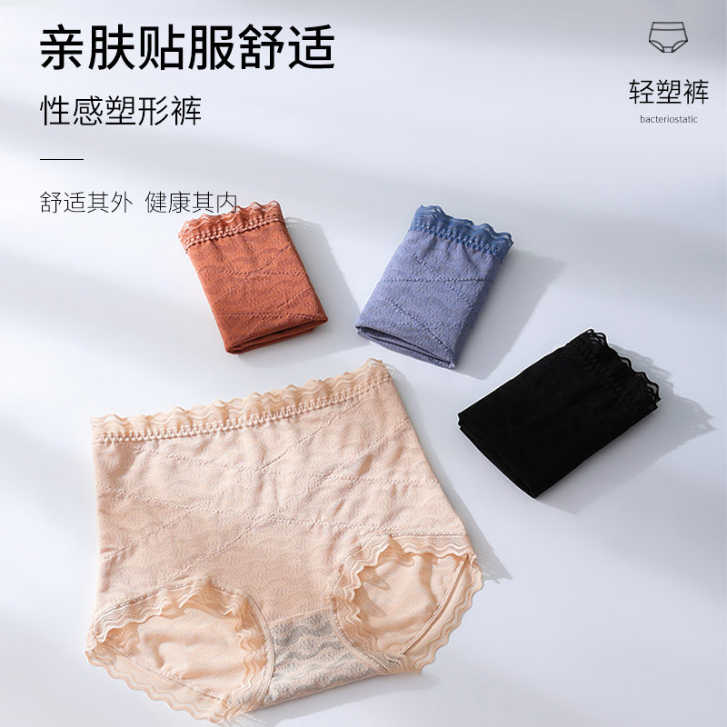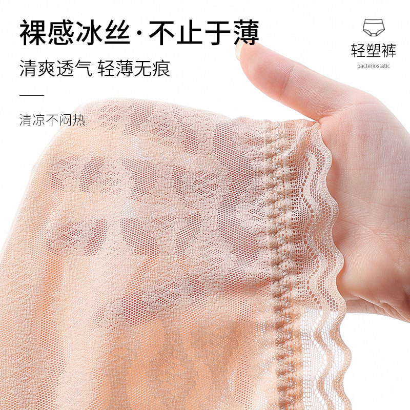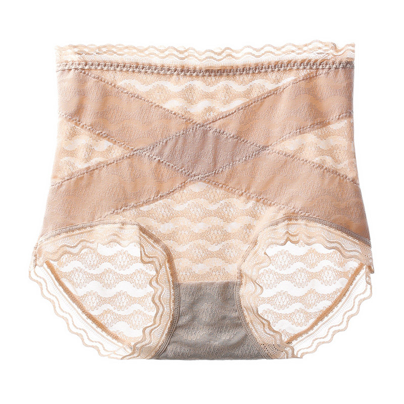 High waist cross belly thin lace underwear female body sculpting small belly graphene antibacterial summer thin breathable