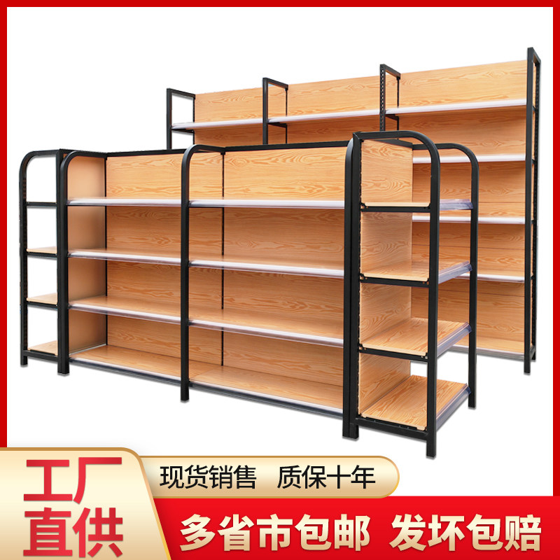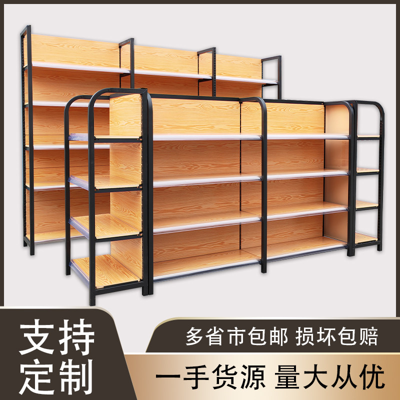 Supermarket shelves single-sided end wood grain convenience store mother and baby store stationery store canteen multi-layer snack display rack