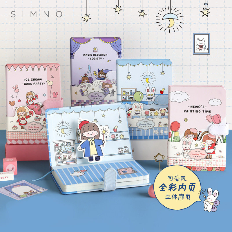 Small Qing New Korea Handbooks Cherry Blossom Notebook cute Students Colorful Page Illustrations Handbooks Retro Diary Girl Heart Art Creative Thickening Cane Ben Joins Wind Notepad-Taobao