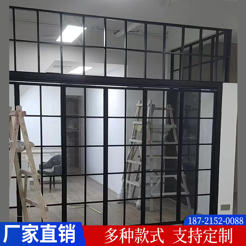 Custom light luxury retro wrought iron glass entry door partition wrought iron lattice glass door glass sliding door sliding door