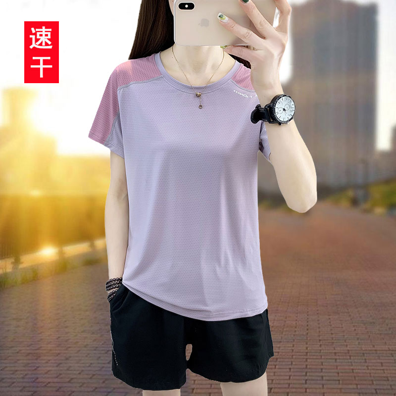 Casual Ice Silk T-Shirt Short Sleeve Cool Summer 2022 New Small Big Size Ladies Quick Dry Loose Thin T-Shirt