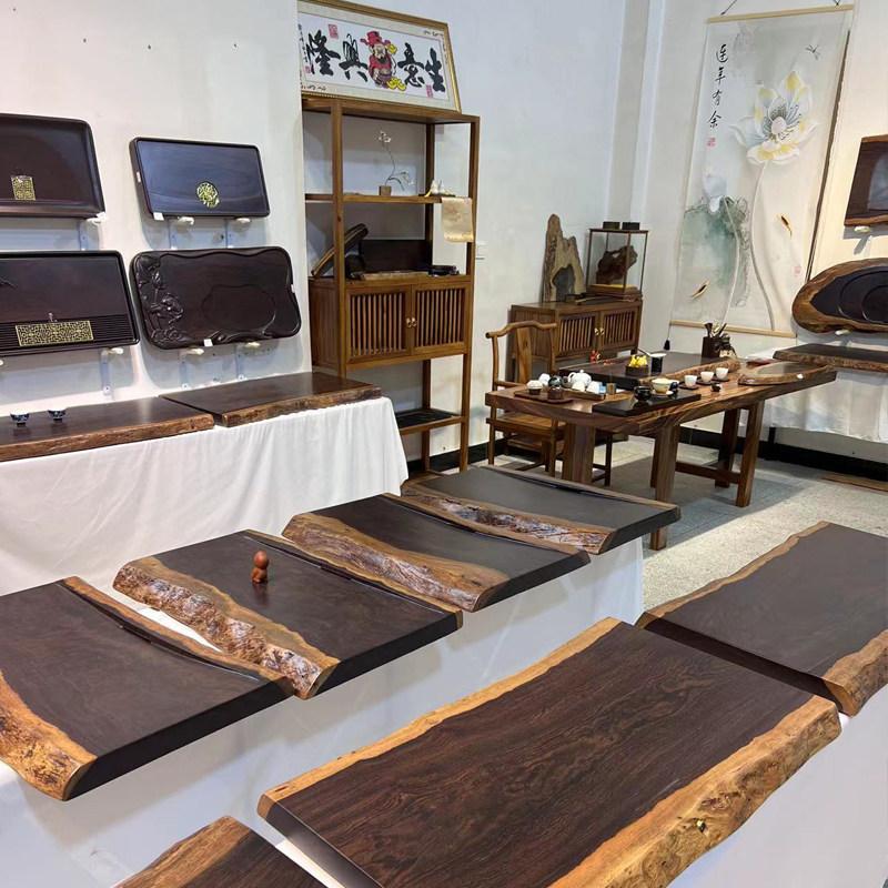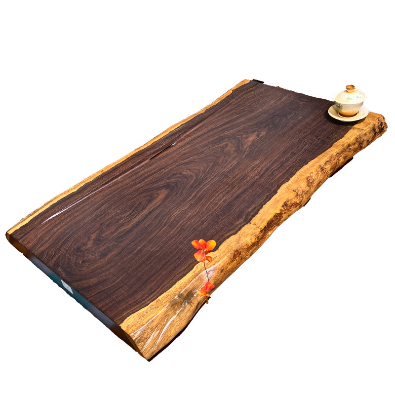 Ebony tea tray whole piece of solid wood tea table natural edge kung fu tea set drainage type tea sea tray simple log